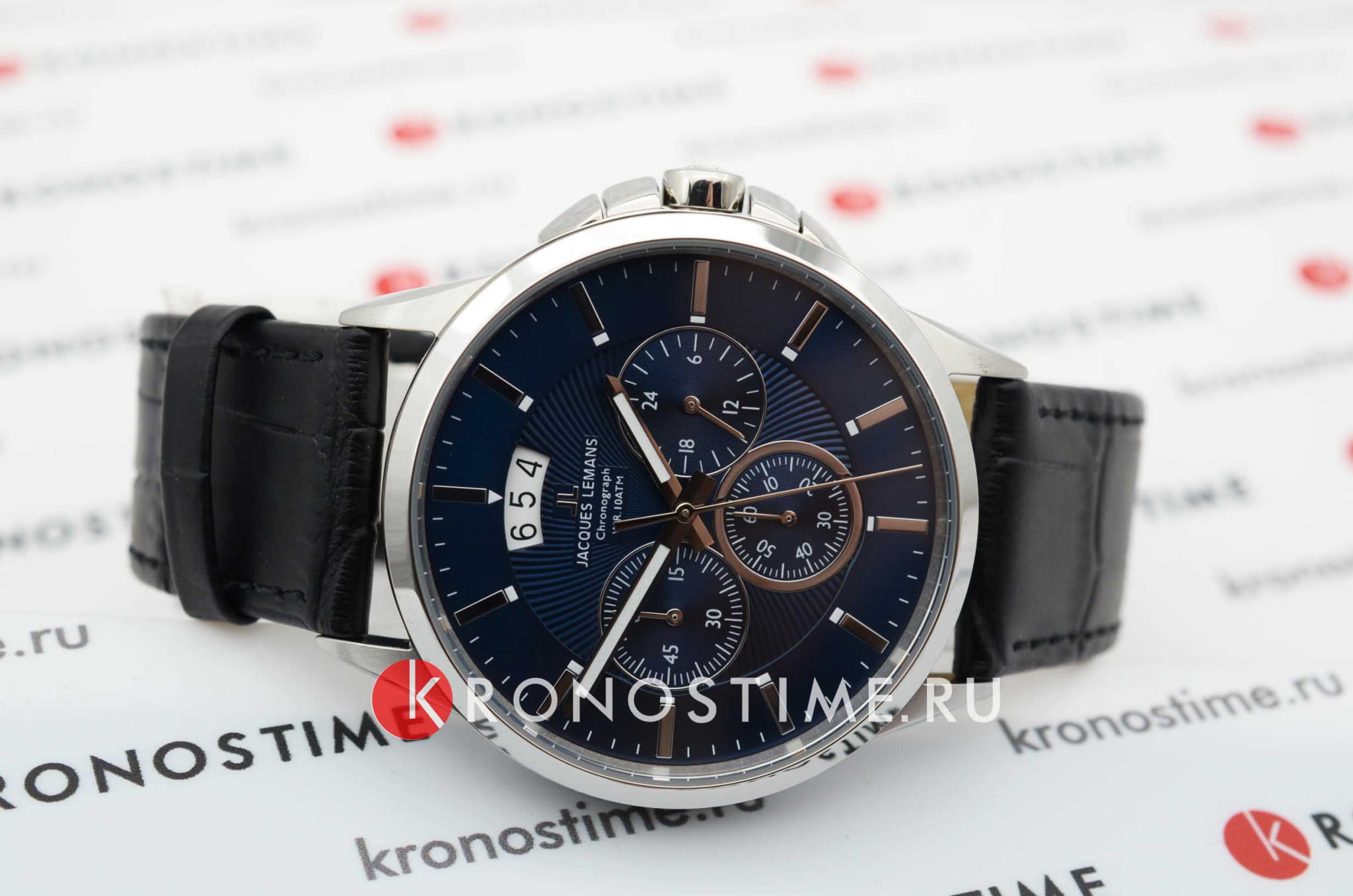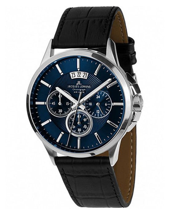 Наручные часы-хронографХронографФункция позволяет измерять отрезки времени с особой точностью: часы, минуты, секунды. Верным признаком хронографа является наличие на циферблате 3 дополнительных окошек-счётчиков. Jacques Lemans призваны ставить на первое место индивидуальный стиль владельца, классическая элегантность придётся по вкусу каждому. Брендовые часы привлекают минималистичным дизайном, отсутствие вычурности и обилия декорирующих элементов делают модель лучшим решением для ежедневного применения. Аксессуар можно носить с деловыми костюмами и повседневной одеждой, он органично сочетается как с классическими брюками, так и с рваными джинсами. Это настоящее часовое искусство высокого качества, часы считаются актуальным вариантом на все времена и с идеальной точностью показывают время благодаря надёжному японскому механизму. Функциональные часы с датой, 12/24-часовым форматом времени, секундомеромСекундомерСекундоме́р — прибор, способный измерять интервалы времени с точностью до долей секунды.