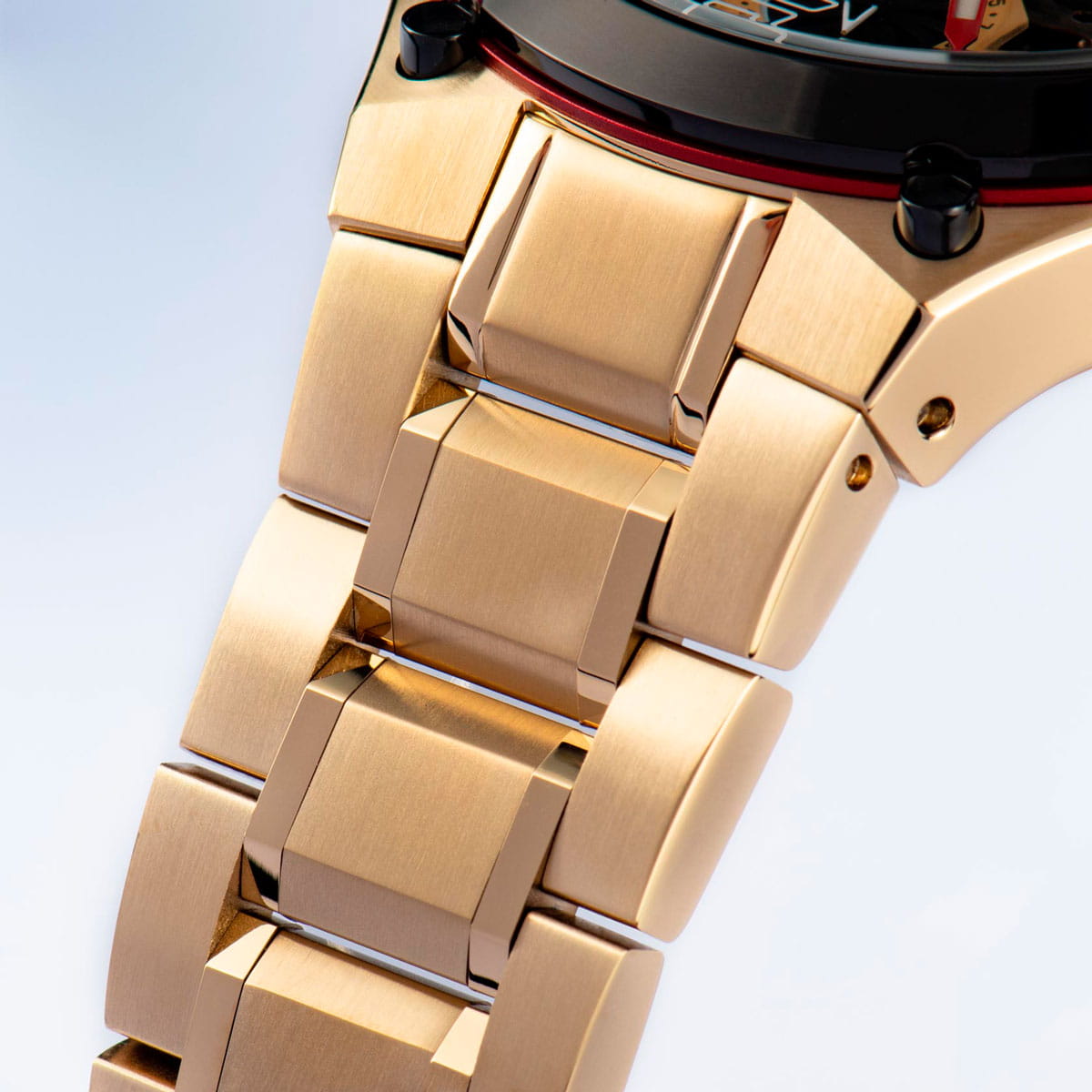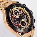 Часы-хронографХронографФункция позволяет измерять отрезки времени с особой точностью: часы, минуты, секунды. Верным признаком хронографа является наличие на циферблате 3 дополнительных окошек-счётчиков.. Повышенная водостойкость составляет 10 атмосфер. Для заводной головки предусмотрена дополнительная защита от внешних воздействий. 44-миллиметровый корпус из нержавеющей стали с PVD-покрытиемPVDУльтратонкое покрытие наносится в технике вакуумного напыления, сочетает в себе нитрид титана особой прочности со слоем золота или оксида хрома. Несёт в себе декоративную или защитную функцию. и с декоративными винтами.
