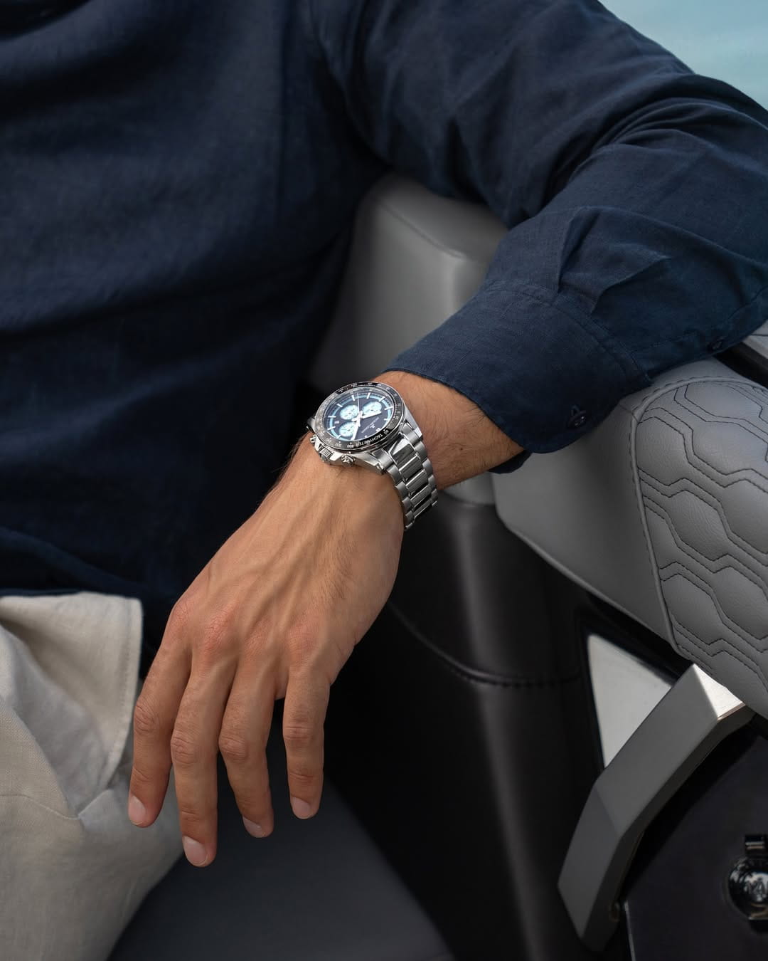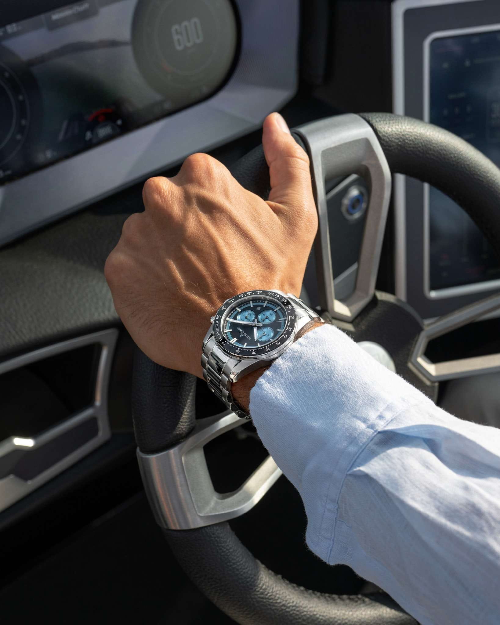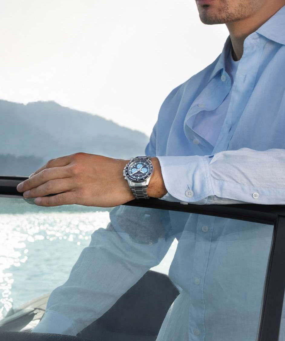 Мужские кварцевые часы-хронографХронографФункция позволяет измерять отрезки времени с особой точностью: часы, минуты, секунды. Верным признаком хронографа является наличие на циферблате 3 дополнительных окошек-счётчиков. с секундомеромСекундомерСекундоме́р — прибор, способный измерять интервалы времени с точностью до долей секунды. Jacques Lemans 1-2207B – лаконичная красота и изысканная элегантность. Оригинальная модель с классическим оформлением станет превосходным завершением образа, наделив его индивидуальным характером. Корпус выполнен из нержавеющей стали серебристого цвета, диаметром 43 мм, что обеспечивает долговечность и утончённый внешний вид. Минеральное стеклоМинеральное стеклоМинеральное стекло представляет собой искусственно выращенный минерал кварца. Такое стекло отличается особой устойчивостью к повреждениям и царапинам. Уступает по некоторым качествам сапфировому стеклу. повышенной прочности Crystex защищает циферблат от царапин. Неподвижный безельБезельВнешний ободок, закрепляющий стекло. В спортивных часах так называется поворотное кольцо с делениями на циферблате, выполняет роль таймера – замеряет отрезки времени на шкале. Неподвижный безель – элемент декора. Однонаправленно вращающийся безель на дайверских часах позволяет фиксировать моменты погружения и выныривания на поверхность. с PVD-покрытиемPVDУльтратонкое покрытие наносится в технике вакуумного напыления, сочетает в себе нитрид титана особой прочности со слоем золота или оксида хрома. Несёт в себе декоративную или защитную функцию. и тахиметромТахиметрРазмеченная шкала, располагается на ободке или безеле часов. Тахиметр позволяет рассчитать скорость на определённом участке пути, расстояние измеряется в километрах или милях.. Стальной браслет на раскладной застёжке с фиксаторомРаскладная застёжкаТакой тип застёжки используется только на браслетах из металла. Она никогда не раскрывается полностью, происходит разделение на 2 и более частей. Раскладывающая застёжка снизит вероятность потери часов к минимуму. обеспечивает комфортное ношение Водозащита 200 метров позволит плавать, нырять и заниматься другими водными видами спорта. Стрелки и метки с люминесцентным покрытиемЛюминесцентное покрытиеПозволяет считывать показания времени в темноте. Производители наносят на стрелки, часовые индексы, безель или поверхность циферблата светонакопительный состав, дающий холодное свечение. позволяющие легко определять время даже в темноте. 12-ти и 24-х часовой формат времени. Окошко даты находится в положении между 4 и 5 часами. Рифленая заводная головка с защитой. Это аксессуар для мужчины, который ценит классический стиль и функциональность.