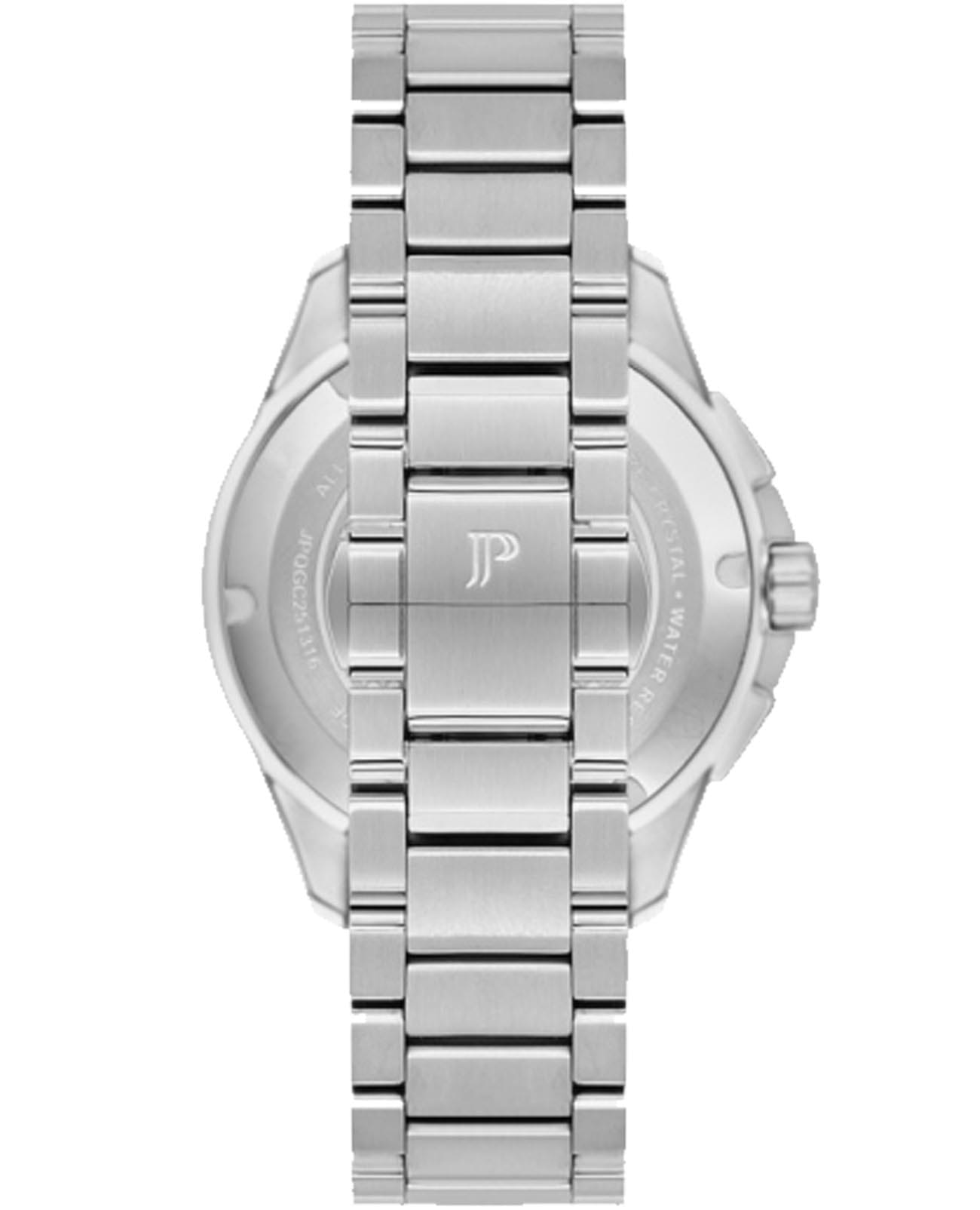 Швейцарские мужские часы-хронографХронографФункция позволяет измерять отрезки времени с особой точностью: часы, минуты, секунды. Верным признаком хронографа является наличие на циферблате 3 дополнительных окошек-счётчиков. с секундомеромСекундомерСекундоме́р — прибор, способный измерять интервалы времени с точностью до долей секунды. Jacques Philippe Magnificus JPQGC251336, кварцевый механизм с высокой точностью. Сапфировое стеклоСапфировое стеклоПрочный и надёжный материал из кристалла сапфира синтетического происхождения, характеризующийся особой твёрдостью и устойчивостью к царапинам и повреждениям. устойчивое к появлению царапин, обладающее высокой прозрачностью. Корпус часов изготовлен из нержавеющей стали. БезельБезельВнешний ободок, закрепляющий стекло. В спортивных часах так называется поворотное кольцо с делениями на циферблате, выполняет роль таймера – замеряет отрезки времени на шкале. Неподвижный безель – элемент декора. Однонаправленно вращающийся безель на дайверских часах позволяет фиксировать моменты погружения и выныривания на поверхность. с IP-покрытиемIP-покрытиеМетод ионного напыления. Демонстрирует повышенную устойчивость к истиранию, окислению и химическим веществам. Под воздействием высокого давления и температуры около 1500°C молекулы металла надёжно соединяются с частицами корпуса часов. с тахиметромТахиметрРазмеченная шкала, располагается на ободке или безеле часов. Тахиметр позволяет рассчитать скорость на определённом участке пути, расстояние измеряется в километрах или милях.. На циферблате три дополнительных индикатора. Окошко даты находится в положении 6 часов. Стрелки с люминесцентным покрытиемЛюминесцентное покрытиеПозволяет считывать показания времени в темноте. Производители наносят на стрелки, часовые индексы, безель или поверхность циферблата светонакопительный состав, дающий холодное свечение.. Класс водозащиты: 100 метров, позволит плавать, нырять и заниматься другими водными видами спорта. Стальной браслет на застёжке-бабочке.