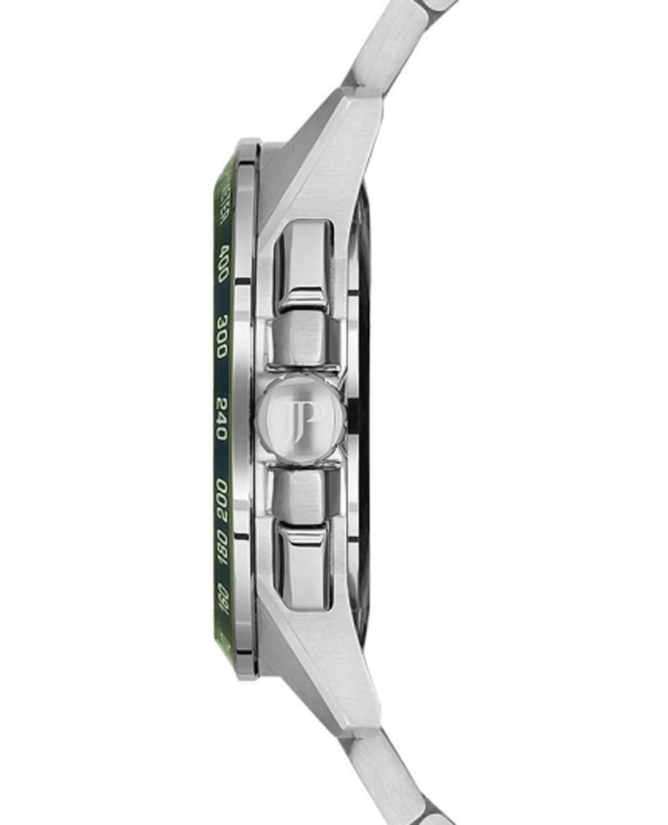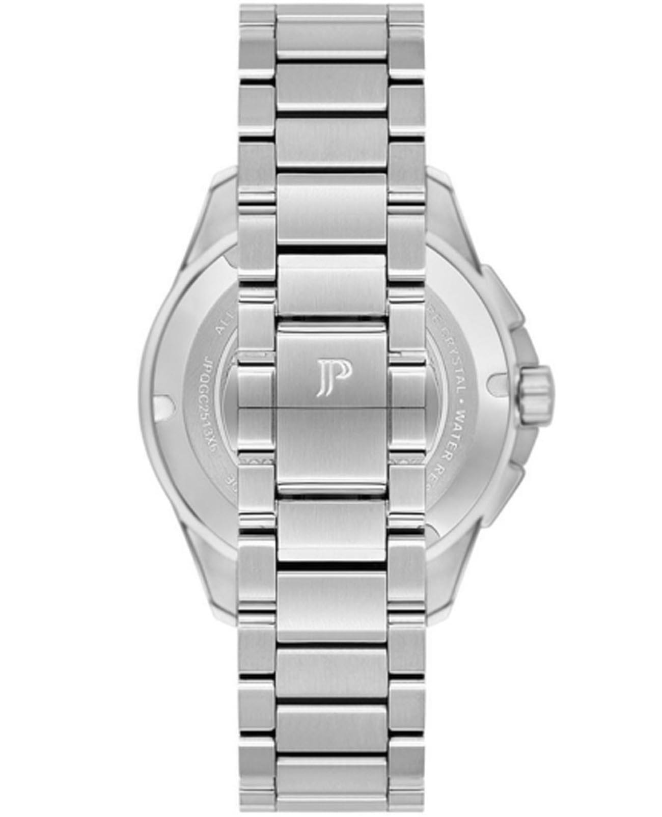 Швейцарские мужские часы-хронографХронографФункция позволяет измерять отрезки времени с особой точностью: часы, минуты, секунды. Верным признаком хронографа является наличие на циферблате 3 дополнительных окошек-счётчиков. с секундомеромСекундомерСекундоме́р — прибор, способный измерять интервалы времени с точностью до долей секунды. Jacques Philippe Magnificus JPQGC2513X6, кварцевый механизм с высокой точностью. Сапфировое стеклоСапфировое стеклоПрочный и надёжный материал из кристалла сапфира синтетического происхождения, характеризующийся особой твёрдостью и устойчивостью к царапинам и повреждениям. устойчивое к появлению царапин, обладающее высокой прозрачностью. Корпус часов изготовлен из нержавеющей стали. БезельБезельВнешний ободок, закрепляющий стекло. В спортивных часах так называется поворотное кольцо с делениями на циферблате, выполняет роль таймера – замеряет отрезки времени на шкале. Неподвижный безель – элемент декора. Однонаправленно вращающийся безель на дайверских часах позволяет фиксировать моменты погружения и выныривания на поверхность. с IP-покрытиемIP-покрытиеМетод ионного напыления. Демонстрирует повышенную устойчивость к истиранию, окислению и химическим веществам. Под воздействием высокого давления и температуры около 1500°C молекулы металла надёжно соединяются с частицами корпуса часов. с тахиметромТахиметрРазмеченная шкала, располагается на ободке или безеле часов. Тахиметр позволяет рассчитать скорость на определённом участке пути, расстояние измеряется в километрах или милях.. На циферблате три дополнительных индикатора. Окошко даты находится в положении 6 часов. Стрелки с люминесцентным покрытиемЛюминесцентное покрытиеПозволяет считывать показания времени в темноте. Производители наносят на стрелки, часовые индексы, безель или поверхность циферблата светонакопительный состав, дающий холодное свечение.. Класс водозащиты: 100 метров, позволит плавать, нырять и заниматься другими водными видами спорта. Стальной браслет на застёжке-бабочке.