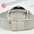 Ремешок выполнен из металлической миланской сетки, шириной 20 мм. Он гармонично сочетается с корпусом и обеспечивает лёгкую посадку, комфортную даже при длительном ношении. Водозащита до 3 ATM защищает часы от случайных брызг и дождя.
