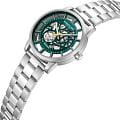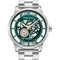 Мужские механические часы с автоподзаводом Kenneth Cole — это стильный аксессуар с эффектом скелетон. Корпус диаметром 44,5 мм выполнен из стали. Циферблат зелёного цвета оформлен штрихами и стрелками, а также частично открытой структурой механизма, позволяющей наблюдать за работой внутренних деталей. Циферблат защищён минеральным стекломМинеральное стеклоМинеральное стекло представляет собой искусственно выращенный минерал кварца. Такое стекло отличается особой устойчивостью к повреждениям и царапинам. Уступает по некоторым качествам сапфировому стеклу.. Гранёная заводная головка дополняет классический дизайн. Прозрачная задняя крышка открывает вид на механизм. Часы оснащены стальным браслетом с раскладной застёжкойРаскладная застёжкаТакой тип застёжки используется только на браслетах из металла. Она никогда не раскрывается полностью, происходит разделение на 2 и более частей. Раскладывающая застёжка снизит вероятность потери часов к минимуму.. Водонепроницаемость 30 м позволяет использовать часы в повседневных условиях. Идеальный выбор для тех, кто ценит технологии и современный стиль.