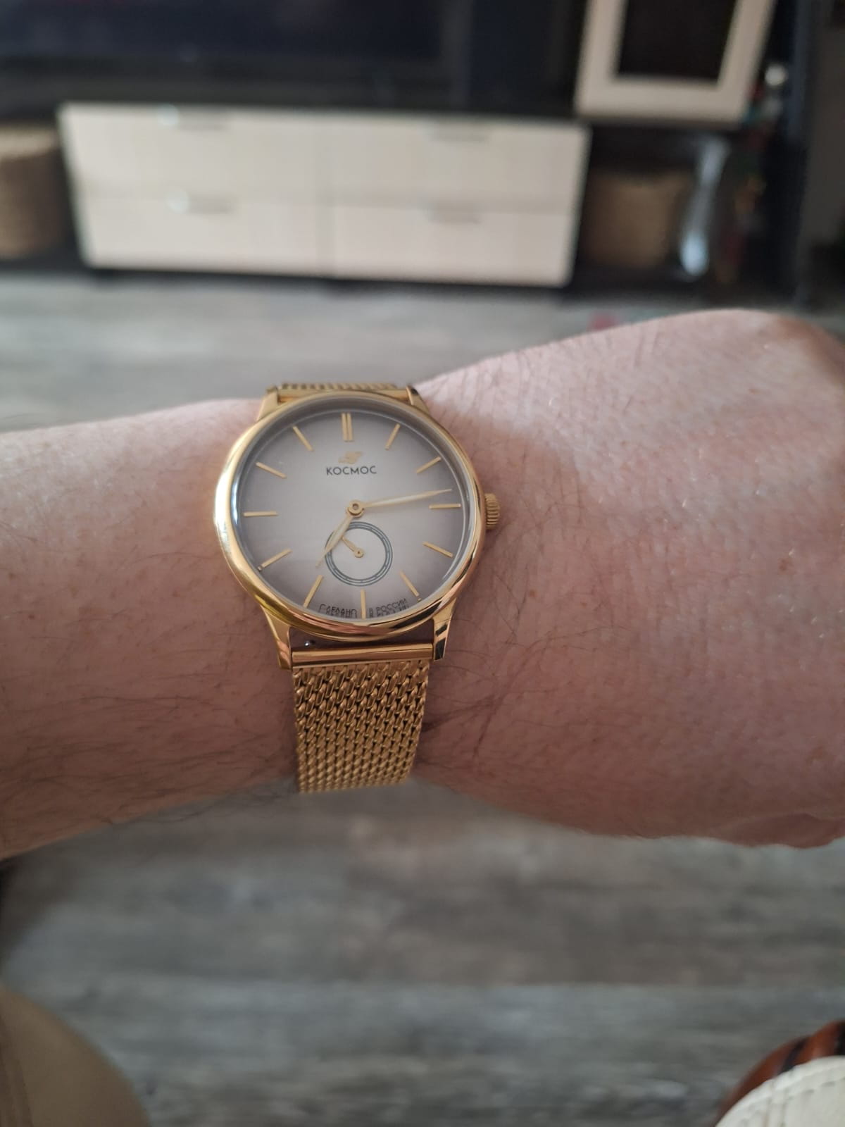 Мужские наручные часы Космос Сириус K 021.20.33 — это сочетание традиций часового искусства 60-70-х годов и футуристического дизайна, вдохновленного космическими исследованиями. Они не только служат напоминанием о прошлом, но и побуждают задуматься о будущем, позволяя наслаждаться качеством и смыслом, вложенными в каждую деталь. Полированный корпус часов выполнен в виде силуэта летающей тарелки благодаря выпуклым формам стекла и нижней части корпуса. Стальные ушки, которые напоминают опоры летающей тарелки, завершает общий образ. На задней крышке часов выгравирован фантазийный сюжет – космическая станция будущего. Серый циферблат в ретро-стиле с выгнутыми краями требует сложной технологии производства, что делает их аналогами часов прошлых эпох. Кончик секундной стрелки изогнут так, чтобы гармонировать с формой циферблата. Выпуклый градиентный циферблат украшен шлифовкой, напоминающей солнечные лучи, и ручными индексами, надежно закрепленными на двух штифтах. Специальное люминесцентное покрытиеЛюминесцентное покрытиеПозволяет считывать показания времени в темноте. Производители наносят на стрелки, часовые индексы, безель или поверхность циферблата светонакопительный состав, дающий холодное свечение. нанесено на часовую, минутную и секундную стрелки, а также на пунктирные метки и окантовку циферблата, создавая эффект светящегося изображения в темноте. Форма минерального стеклаМинеральное стеклоМинеральное стекло представляет собой искусственно выращенный минерал кварца. Такое стекло отличается особой устойчивостью к повреждениям и царапинам. Уступает по некоторым качествам сапфировому стеклу. также тщательно продумана — оно изогнуто как снаружи, так и изнутри. Эта конструкция предотвращает искажение изображения на циферблате, в отличие от традиционных стекол с прямой внутренней частью, которые могут создавать оптические искажения. Часы комплектуются стальным браслетом миланского плетения с IP-покрытиемIP-покрытиеМетод ионного напыления. Демонстрирует повышенную устойчивость к истиранию, окислению и химическим веществам. Под воздействием высокого давления и температуры около 1500°C молекулы металла надёжно соединяются с частицами корпуса часов., который дополнительно защищает от случайного падения. Корпус и браслет часов изготовлены из гипоаллергенной стали с IP-покрытиемIP-покрытиеМетод ионного напыления. Демонстрирует повышенную устойчивость к истиранию, окислению и химическим веществам. Под воздействием высокого давления и температуры около 1500°C молекулы металла надёжно соединяются с частицами корпуса часов., что обеспечивает комфорт при ношении. Заводная головка, застежка и ремешок украшены фирменным логотипом, подчеркивающим индивидуальность данной модели.