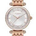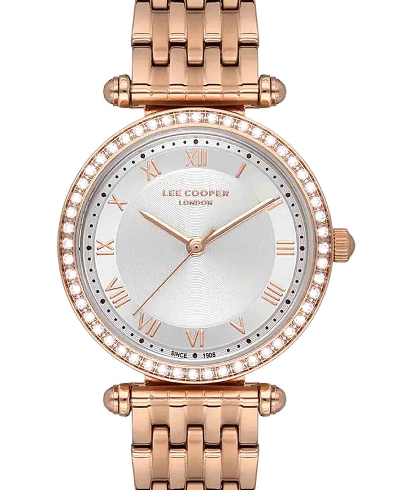 Женские наручные часы Lee Cooper LC07136.430 — это элегантная модель с утончённым дизайном. Корпус диаметром 32 мм выполнен из нержавеющей стали, что придаёт часам изысканный вид. Серебристый циферблат украшен изящными римскими цифрами и стрелками, обеспечивая удобное считывание времени. Циферблат защищён минеральным стекломМинеральное стеклоМинеральное стекло представляет собой искусственно выращенный минерал кварца. Такое стекло отличается особой устойчивостью к повреждениям и царапинам. Уступает по некоторым качествам сапфировому стеклу., устойчивым к царапинам. Часы работают на кварцевом механизме, обеспечивая точность хода. Браслет из нержавеющей стали с раскладной застёжкойРаскладная застёжкаТакой тип застёжки используется только на браслетах из металла. Она никогда не раскрывается полностью, происходит разделение на 2 и более частей. Раскладывающая застёжка снизит вероятность потери часов к минимуму. гарантирует комфортное ношение и надёжную фиксацию на запястье. БезельБезельВнешний ободок, закрепляющий стекло. В спортивных часах так называется поворотное кольцо с делениями на циферблате, выполняет роль таймера – замеряет отрезки времени на шкале. Неподвижный безель – элемент декора. Однонаправленно вращающийся безель на дайверских часах позволяет фиксировать моменты погружения и выныривания на поверхность. с IP-покрытиемIP-покрытиеМетод ионного напыления. Демонстрирует повышенную устойчивость к истиранию, окислению и химическим веществам. Под воздействием высокого давления и температуры около 1500°C молекулы металла надёжно соединяются с частицами корпуса часов. инкрустирован кристаллами. Водозащита 30 метров защищает часы от случайных брызг и дождя, делая их подходящими для повседневного использования.