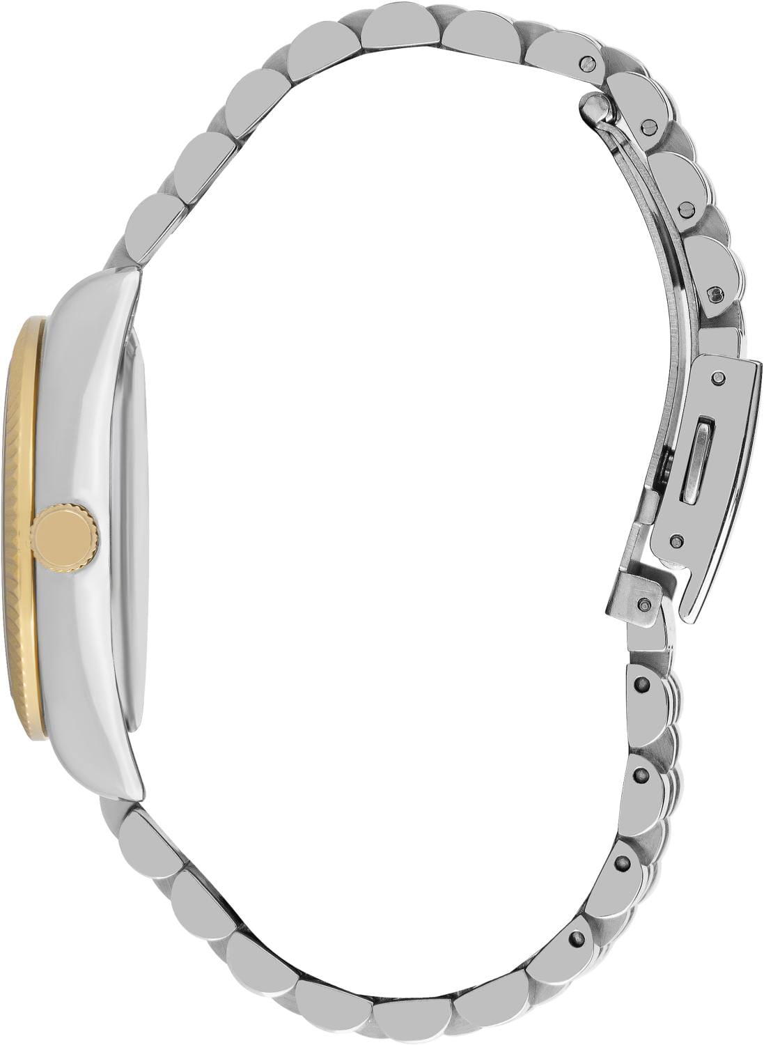 Женские наручные часы Lee Cooper LC07331.220 — это элегантная модель с утончённым дизайном. Корпус диаметром 34 мм выполнен из суперметалла, что придаёт часам изысканный вид. Серебристый циферблат украшен изящными римскими цифрами и стрелками, обеспечивая удобное считывание времени. Циферблат защищён минеральным стекломМинеральное стеклоМинеральное стекло представляет собой искусственно выращенный минерал кварца. Такое стекло отличается особой устойчивостью к повреждениям и царапинам. Уступает по некоторым качествам сапфировому стеклу., устойчивым к царапинам. Часы работают на кварцевом механизме, обеспечивая точность хода. Браслет из нержавеющей стали с раскладной застёжкойРаскладная застёжкаТакой тип застёжки используется только на браслетах из металла. Она никогда не раскрывается полностью, происходит разделение на 2 и более частей. Раскладывающая застёжка снизит вероятность потери часов к минимуму. гарантирует комфортное ношение и надёжную фиксацию на запястье. Водозащита 30 метров защищает часы от случайных брызг и дождя, делая их подходящими для повседневного использования. БезельБезельВнешний ободок, закрепляющий стекло. В спортивных часах так называется поворотное кольцо с делениями на циферблате, выполняет роль таймера – замеряет отрезки времени на шкале. Неподвижный безель – элемент декора. Однонаправленно вращающийся безель на дайверских часах позволяет фиксировать моменты погружения и выныривания на поверхность. с IP-покрытиемIP-покрытиеМетод ионного напыления. Демонстрирует повышенную устойчивость к истиранию, окислению и химическим веществам. Под воздействием высокого давления и температуры около 1500°C молекулы металла надёжно соединяются с частицами корпуса часов.. Стрелки покрыты люминесцентным покрытиемЛюминесцентное покрытиеПозволяет считывать показания времени в темноте. Производители наносят на стрелки, часовые индексы, безель или поверхность циферблата светонакопительный состав, дающий холодное свечение., обеспечивая удобное считывание показаний в условиях недостаточного освещения.