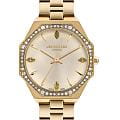 Женские часы Lee Cooper LC07599.110 — это стильное сочетание элегантности и современного дизайна. Круглый корпус диаметром 35 мм выполнен из суперметалла с IP-покрытиемIP-покрытиеМетод ионного напыления. Демонстрирует повышенную устойчивость к истиранию, окислению и химическим веществам. Под воздействием высокого давления и температуры около 1500°C молекулы металла надёжно соединяются с частицами корпуса часов. золотистого цвета. Циферблат защищен минеральным стекломМинеральное стеклоМинеральное стекло представляет собой искусственно выращенный минерал кварца. Такое стекло отличается особой устойчивостью к повреждениям и царапинам. Уступает по некоторым качествам сапфировому стеклу., обеспечивающий устойчивость к царапинам. Неподвижный безельБезельВнешний ободок, закрепляющий стекло. В спортивных часах так называется поворотное кольцо с делениями на циферблате, выполняет роль таймера – замеряет отрезки времени на шкале. Неподвижный безель – элемент декора. Однонаправленно вращающийся безель на дайверских часах позволяет фиксировать моменты погружения и выныривания на поверхность. и циферблат инкрустированы цирконами. Центральные часовая, минутная и секундная стрелки. Часы оснащены надежным кварцевым механизмом, источник питания - батарейка. Металлический браслет на раскладной застёжкеРаскладная застёжкаТакой тип застёжки используется только на браслетах из металла. Она никогда не раскрывается полностью, происходит разделение на 2 и более частей. Раскладывающая застёжка снизит вероятность потери часов к минимуму. гарантирует комфортную посадку на запястье. Водозащита 30 метров защищает модель от случайных брызг и дождя. Lee Cooper — отличный выбор для тех, кто ценит утонченность и качество.
