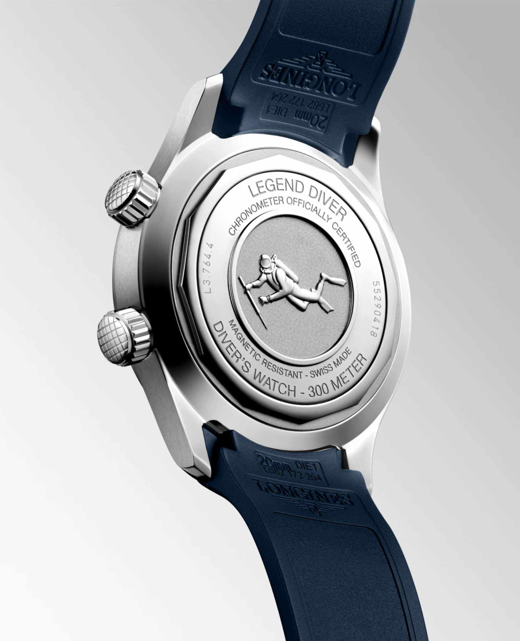 Швейцарские мужские механические часы Longines Legend Diver L3.764.4.90.9 – спортивный аксессуар в дайверском стиле. Циферблат отличается улучшенной читабельностью показателей благодаря крупной индикации времени, стрелками и метками с люминесцентной подсветкойЛюминесцентное покрытиеПозволяет считывать показания времени в темноте. Производители наносят на стрелки, часовые индексы, безель или поверхность циферблата светонакопительный состав, дающий холодное свечение. Super-LumiNova, антибликовому покрытиюАнтибликовое покрытиеСлой оксида металла в 0,13-0,3 микрон, благодаря которому стекло часов не бликует и не отражает свет. Антибликовое покрытие уменьшает отражение света в 10 раз, обеспечивая отличную читаемость показателей циферблата. сапфирового стеклаСапфировое стеклоПрочный и надёжный материал из кристалла сапфира синтетического происхождения, характеризующийся особой твёрдостью и устойчивостью к царапинам и повреждениям., устойчивого к мелким механическим повреждениям. Швейцарский автоматический механизм L888 имеет запас хода на 72 часа. Часы укомплектованы каучуковым ремнем со стандартной застежкой, превосходно дополняющим эксклюзивный образ модели. Эта модель идеально подходит для мужчин, ценящих стиль, функциональность и надёжность в одном аксессуаре.