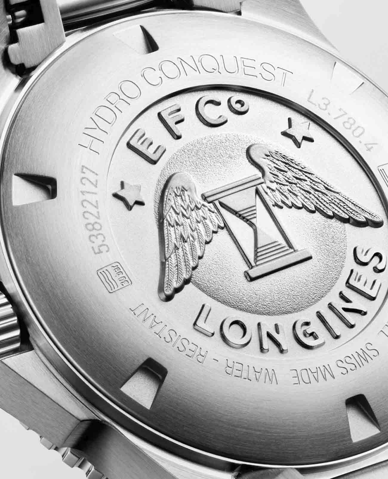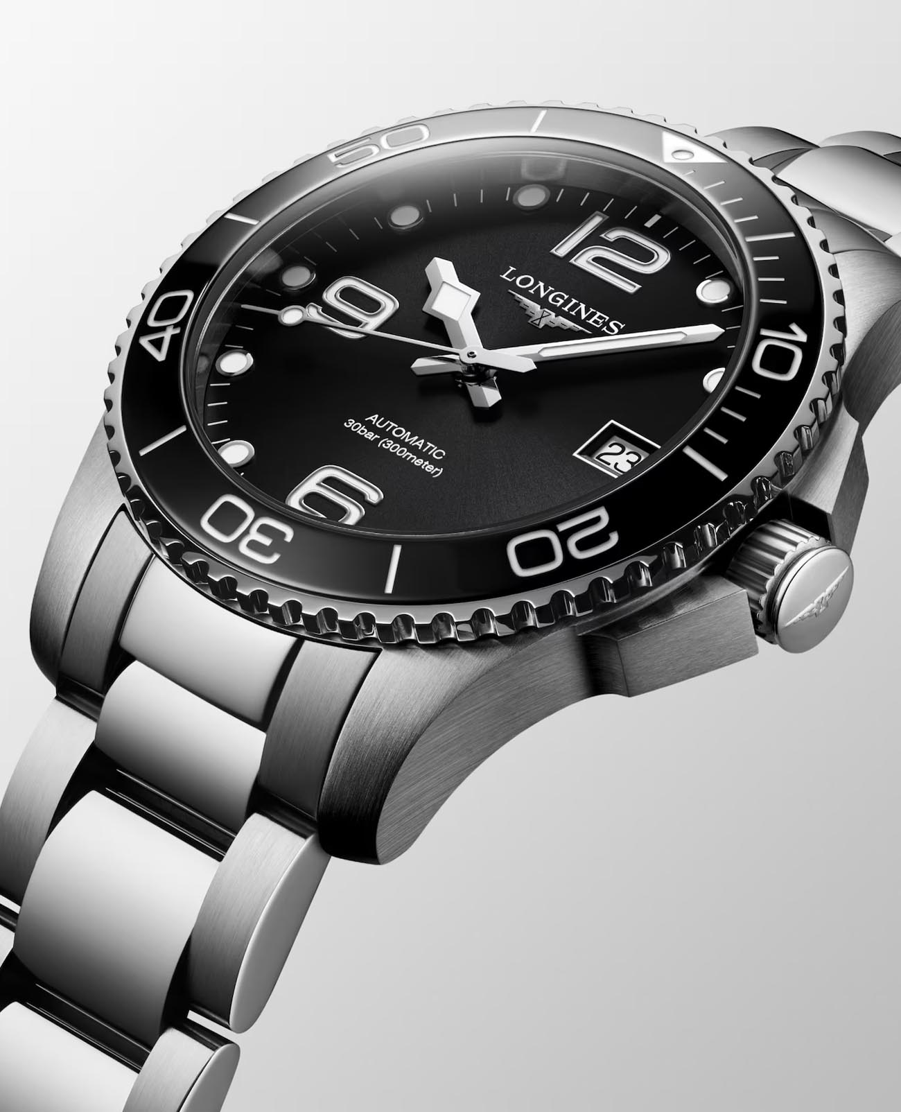 Швейцарские механические часы для дайвинга Longines HydroConquest L3.780.4.56.6. Сапфировое стеклоСапфировое стеклоПрочный и надёжный материал из кристалла сапфира синтетического происхождения, характеризующийся особой твёрдостью и устойчивостью к царапинам и повреждениям. с многослойным антибликовым покрытием с обеих сторон, устойчивое к появлению царапин, обладающее высокой прозрачностью. Корпус часов изготовлен из стали. Вращающийся безельБезельВнешний ободок, закрепляющий стекло. В спортивных часах так называется поворотное кольцо с делениями на циферблате, выполняет роль таймера – замеряет отрезки времени на шкале. Неподвижный безель – элемент декора. Однонаправленно вращающийся безель на дайверских часах позволяет фиксировать моменты погружения и выныривания на поверхность. из стали и керамики, защищенный от царапин, никогда не изнашивается и не выцветает. Стрелки и метки с люминесцентным покрытиемЛюминесцентное покрытиеПозволяет считывать показания времени в темноте. Производители наносят на стрелки, часовые индексы, безель или поверхность циферблата светонакопительный состав, дающий холодное свечение.. Окошко даты находится в положении 3 часов. Класс водозащиты: 300 метров, позволит плавать, нырять и заниматься другими водными видами спорта. Стальной браслет на раскладной застёжкеРаскладная застёжкаТакой тип застёжки используется только на браслетах из металла. Она никогда не раскрывается полностью, происходит разделение на 2 и более частей. Раскладывающая застёжка снизит вероятность потери часов к минимуму..