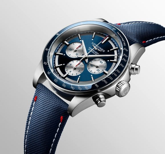 Мужские швейцарские механические часы- хронографХронографФункция позволяет измерять отрезки времени с особой точностью: часы, минуты, секунды. Верным признаком хронографа является наличие на циферблате 3 дополнительных окошек-счётчиков. Longines Conquest L3.835.4.91.2. Сапфировое стеклоСапфировое стеклоПрочный и надёжный материал из кристалла сапфира синтетического происхождения, характеризующийся особой твёрдостью и устойчивостью к царапинам и повреждениям. с многослойным антибликовым покрытием с обеих сторон, устойчивое к появлению царапин, обладающее высокой прозрачностью. Корпус часов изготовлен из стали. Неподвижный безельБезельВнешний ободок, закрепляющий стекло. В спортивных часах так называется поворотное кольцо с делениями на циферблате, выполняет роль таймера – замеряет отрезки времени на шкале. Неподвижный безель – элемент декора. Однонаправленно вращающийся безель на дайверских часах позволяет фиксировать моменты погружения и выныривания на поверхность. из стали и керамики, защищенный от царапин, никогда не изнашивается и не выцветает. Шкала тахиметраТахиметрРазмеченная шкала, располагается на ободке или безеле часов. Тахиметр позволяет рассчитать скорость на определённом участке пути, расстояние измеряется в километрах или милях.. На циферблате расположены три дополнительных циферблата. Стрелки и метки с люминесцентным покрытиемЛюминесцентное покрытиеПозволяет считывать показания времени в темноте. Производители наносят на стрелки, часовые индексы, безель или поверхность циферблата светонакопительный состав, дающий холодное свечение.. Класс водозащиты: 100 метров, позволит плавать, нырять и заниматься другими водными видами спорта. Тканевый ремешок на раскладной застёжкеРаскладная застёжкаТакой тип застёжки используется только на браслетах из металла. Она никогда не раскрывается полностью, происходит разделение на 2 и более частей. Раскладывающая застёжка снизит вероятность потери часов к минимуму.. Лимитированная серия.