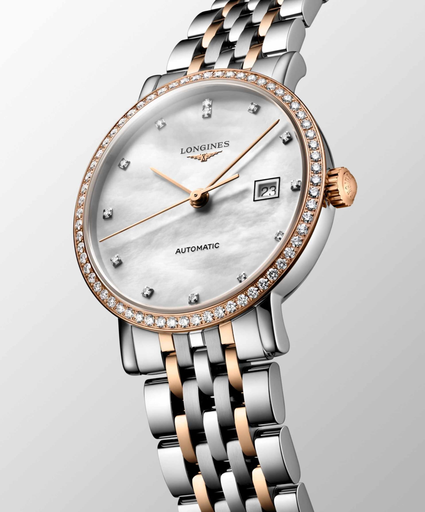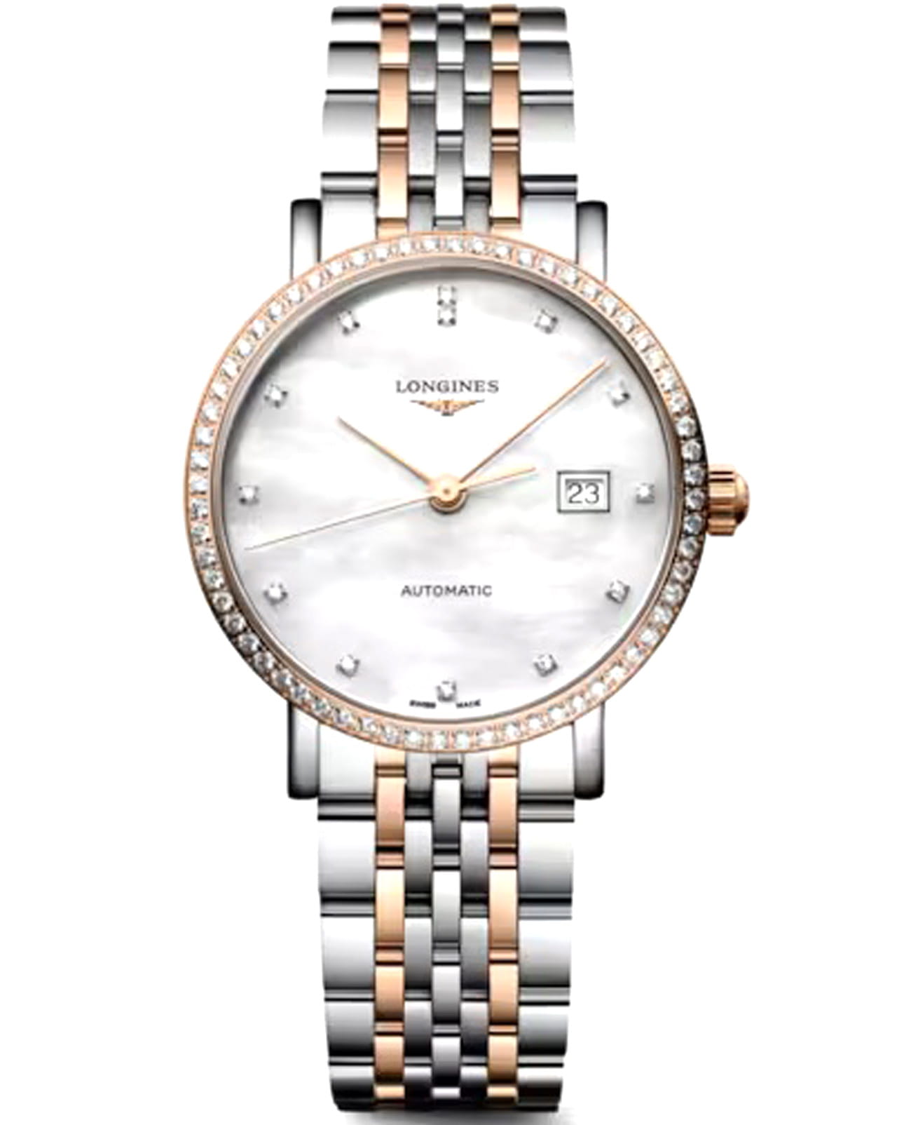 Изысканные женские часы Longines Elegant Collection L4.310.5.81.7 — это воплощение спокойной роскоши и вечного стиля. Все элементы циферблата подчеркивают элегантность и классический вкус модели. Корпус часов изготовлен из нержавеющей стали, диаметром 29 мм. Защиту циферблата обеспечивает прочное сапфировое стеклоСапфировое стеклоПрочный и надёжный материал из кристалла сапфира синтетического происхождения, характеризующийся особой твёрдостью и устойчивостью к царапинам и повреждениям. с антибликовым покрытиемАнтибликовое покрытиеСлой оксида металла в 0,13-0,3 микрон, благодаря которому стекло часов не бликует и не отражает свет. Антибликовое покрытие уменьшает отражение света в 10 раз, обеспечивая отличную читаемость показателей циферблата. гарантирующее четкость показаний. Циферблат украшен 13 бриллиантами Top Wesselton VS-SI общим весом 0,029 карата. Неподвижный безельБезельВнешний ободок, закрепляющий стекло. В спортивных часах так называется поворотное кольцо с делениями на циферблате, выполняет роль таймера – замеряет отрезки времени на шкале. Неподвижный безель – элемент декора. Однонаправленно вращающийся безель на дайверских часах позволяет фиксировать моменты погружения и выныривания на поверхность. из 18-каратного золота18-каратное золотоОбозначение по каратной системе пробирования, оно показывает, сколько драгоценного металла содержится в изделии. 18 карат - в составе 75% чистого золота, соответствует 750 пробе.