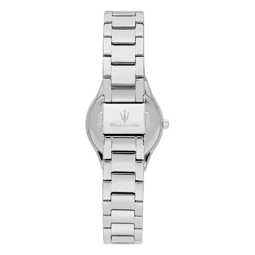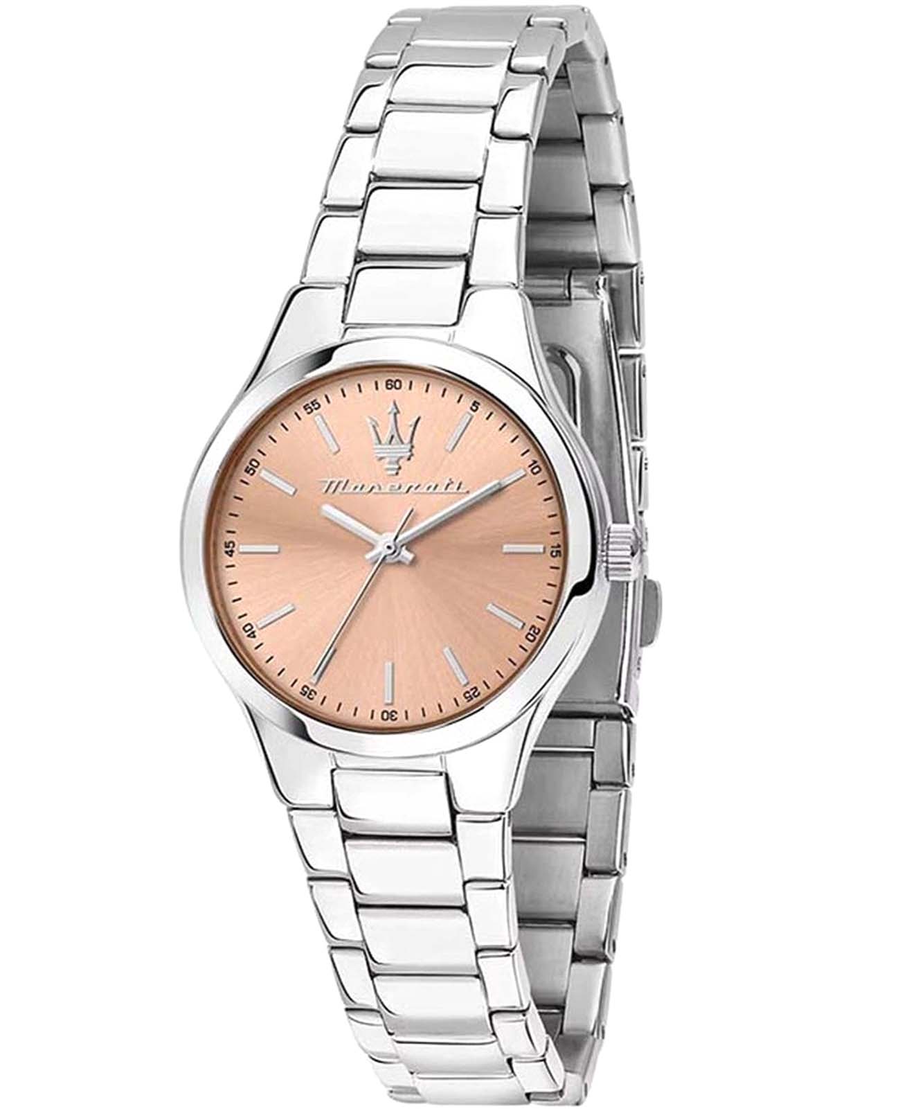 Maserati Attrazione R8853151507 — воплощение стиля и функциональности для современных женщин, ценящих качество и элегантность. Корпус диаметром 30 мм выполнен из нержавеющей стали, обеспечивая прочность и долговечность.Минеральное стеклоМинеральное стеклоМинеральное стекло представляет собой искусственно выращенный минерал кварца. Такое стекло отличается особой устойчивостью к повреждениям и царапинам. Уступает по некоторым качествам сапфировому стеклу. надежно защищает синий циферблат с изящными рисками, придавая часам утонченный вид. Благодаря водостойкости до 50 метров (50 АТМ), эти часы станут вашим надежным спутником в любых условиях, будь то деловая встреча или активный отдых. Завершающий штрих — стальной браслет с раскладной застёжкойРаскладная застёжкаТакой тип застёжки используется только на браслетах из металла. Она никогда не раскрывается полностью, происходит разделение на 2 и более частей. Раскладывающая застёжка снизит вероятность потери часов к минимуму., который подчеркивает общий стиль, обеспечивая комфорт и надежность в носке. Метки в виде штрихов. Maserati Attrazione — это стильный аксессуар, отражающий итальянскую элегантность и внимание к деталям.