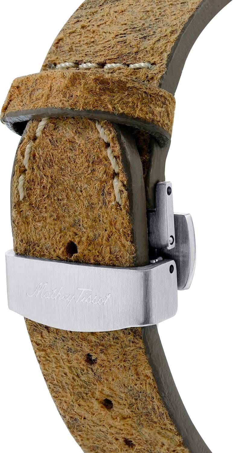 Мужские механические с автоподзаводом часы-хронографХронографФункция позволяет измерять отрезки времени с особой точностью: часы, минуты, секунды. Верным признаком хронографа является наличие на циферблате 3 дополнительных окошек-счётчиков. с секундомеромСекундомерСекундоме́р — прибор, способный измерять интервалы времени с точностью до долей секунды. Mathey-Tissot Type 21 H1821CHATLNO — это стильное сочетание элегантности и современного дизайна. Изящный корпус выполнен из нержавеющей стали, диаметром 42 мм, что придаст образу элегантности и надежности. Изысканный циферблат с метками в виде арабских цифр придает модели особый блеск. Циферблат защищен сапфировым стекломСапфировое стеклоПрочный и надёжный материал из кристалла сапфира синтетического происхождения, характеризующийся особой твёрдостью и устойчивостью к царапинам и повреждениям., обеспечивает устойчивость к царапинам. Стрелки с люминесцентным покрытиемЛюминесцентное покрытиеПозволяет считывать показания времени в темноте. Производители наносят на стрелки, часовые индексы, безель или поверхность циферблата светонакопительный состав, дающий холодное свечение.. Окошко даты находится в положении 3 часа. Кожаный ремешок на застёжке «бабочка» с кнопкамиЗастёжка "бабочка"Такой вид застёжки дополняется предохранителями, помогающими избежать случайного раскрытия браслета. Обладают изящным исполнением. , гарантирует комфортное и безопасное ношение. Рифленая заводная головка. Класс водозащиты: 50 метров позволит защитить корпус от случайных брызг или капель дождя. Mathey-Tissot — отличный выбор для тех, кто ценит утонченность и качество.