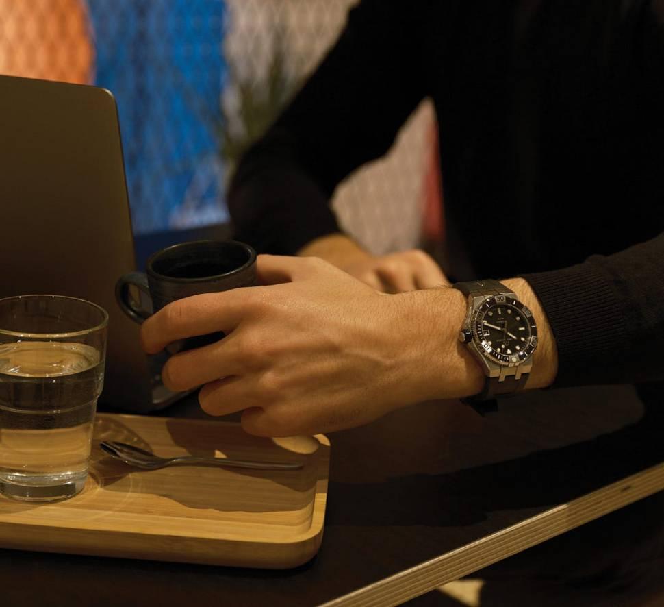 Механический механизм (автоматический калибр) с высокой точностью. Сапфировое стеклоСапфировое стеклоПрочный и надёжный материал из кристалла сапфира синтетического происхождения, характеризующийся особой твёрдостью и устойчивостью к царапинам и повреждениям. устойчивое к появлению царапин, обладающее высокой прозрачностью. Стрелки с люминесцентным покрытиемЛюминесцентное покрытиеПозволяет считывать показания времени в темноте. Производители наносят на стрелки, часовые индексы, безель или поверхность циферблата светонакопительный состав, дающий холодное свечение.. Поворотный безельБезельВнешний ободок, закрепляющий стекло. В спортивных часах так называется поворотное кольцо с делениями на циферблате, выполняет роль таймера – замеряет отрезки времени на шкале. Неподвижный безель – элемент декора. Однонаправленно вращающийся безель на дайверских часах позволяет фиксировать моменты погружения и выныривания на поверхность.. Класс водозащиты: 100 метров, позволит плавать, нырять и заниматься другими водными видами спорта. Корпус часов изготовлен из нержавеющей стали. Каучуковый ремешок с классической застежкой.