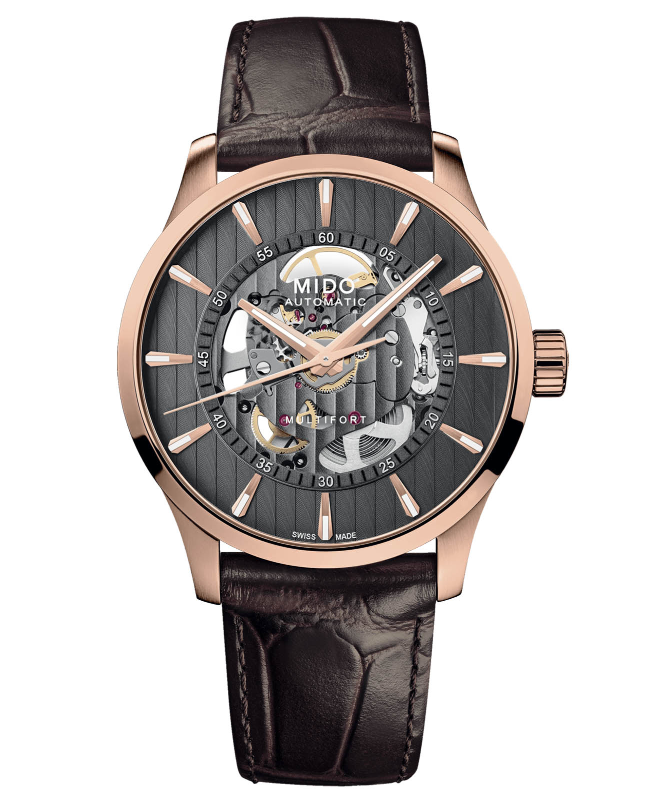 Швейцарские мужские механические часы Mido Multifort Skeleton Vertigo M038.436.36.061.00