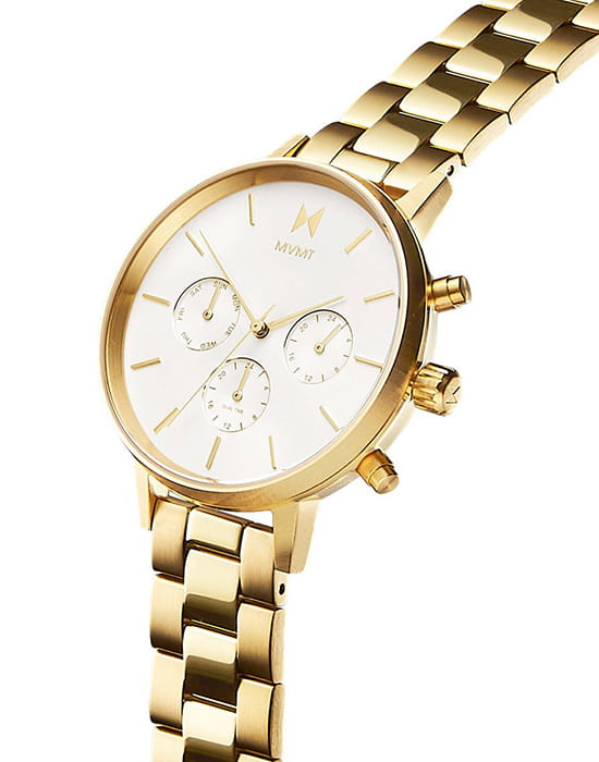 Женские кварцевые часы MVMT D-FC01-G – лаконичная красота и изысканная элегантность. Оригинальная модель с классическим оформлением станет превосходным завершением образа, наделив его индивидуальным характером. Корпус выполнен из нержавеющей стали с IP-покрытиемIP-покрытиеМетод ионного напыления. Демонстрирует повышенную устойчивость к истиранию, окислению и химическим веществам. Под воздействием высокого давления и температуры около 1500°C молекулы металла надёжно соединяются с частицами корпуса часов. золотистого цвета, диаметром 38 мм и толщиной 10 мм, что обеспечивает долговечность и утончённый внешний вид. Закаленное минеральное стеклоМинеральное стеклоМинеральное стекло представляет собой искусственно выращенный минерал кварца. Такое стекло отличается особой устойчивостью к повреждениям и царапинам. Уступает по некоторым качествам сапфировому стеклу. защищает циферблат от царапин. Стальной браслет с IP-покрытиемIP-покрытиеМетод ионного напыления. Демонстрирует повышенную устойчивость к истиранию, окислению и химическим веществам. Под воздействием высокого давления и температуры около 1500°C молекулы металла надёжно соединяются с частицами корпуса часов. на раскладной застёжке с фиксаторомРаскладная застёжкаТакой тип застёжки используется только на браслетах из металла. Она никогда не раскрывается полностью, происходит разделение на 2 и более частей. Раскладывающая застёжка снизит вероятность потери часов к минимуму. обеспечивает комфортное ношение. Водозащита 50 метров позволит защитить корпус от случайных брызг или капель дождя. 12-ти и 24-х часовой формат времени. Второй часовой поясВторой часовой поясФункция, позволяющая отображать время двух часовых поясов одновременно.. День недели отображается на отдельном циферблате. Рифленая заводная головка с защитой. Женский аксессуар, который покорит вас своим элегантным дизайном. Эти часы станут изысканным акцентом в вашем образе, подчеркивая вашу утонченность и хороший вкус.