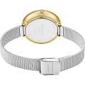 Женские наручные часы на стальном браслете Obaku Mesh V211LXGIMC, кварцевый механизм с высокой точностью. Класс водозащиты: 30 метров, позволит защитить корпус от случайных брызг или капель дождя. Корпус часов изготовлен из матовой стали с IP-покрытиемIP-покрытиеМетод ионного напыления. Демонстрирует повышенную устойчивость к истиранию, окислению и химическим веществам. Под воздействием высокого давления и температуры около 1500°C молекулы металла надёжно соединяются с частицами корпуса часов. цвета желтого золота. Стальной браслет выполнен в технике миланского плетения, раскладная застёжкаРаскладная застёжкаТакой тип застёжки используется только на браслетах из металла. Она никогда не раскрывается полностью, происходит разделение на 2 и более частей. Раскладывающая застёжка снизит вероятность потери часов к минимуму.. Прочное минеральное стеклоМинеральное стеклоМинеральное стекло представляет собой искусственно выращенный минерал кварца. Такое стекло отличается особой устойчивостью к повреждениям и царапинам. Уступает по некоторым качествам сапфировому стеклу. устойчивое к мелким механическим повреждениям.