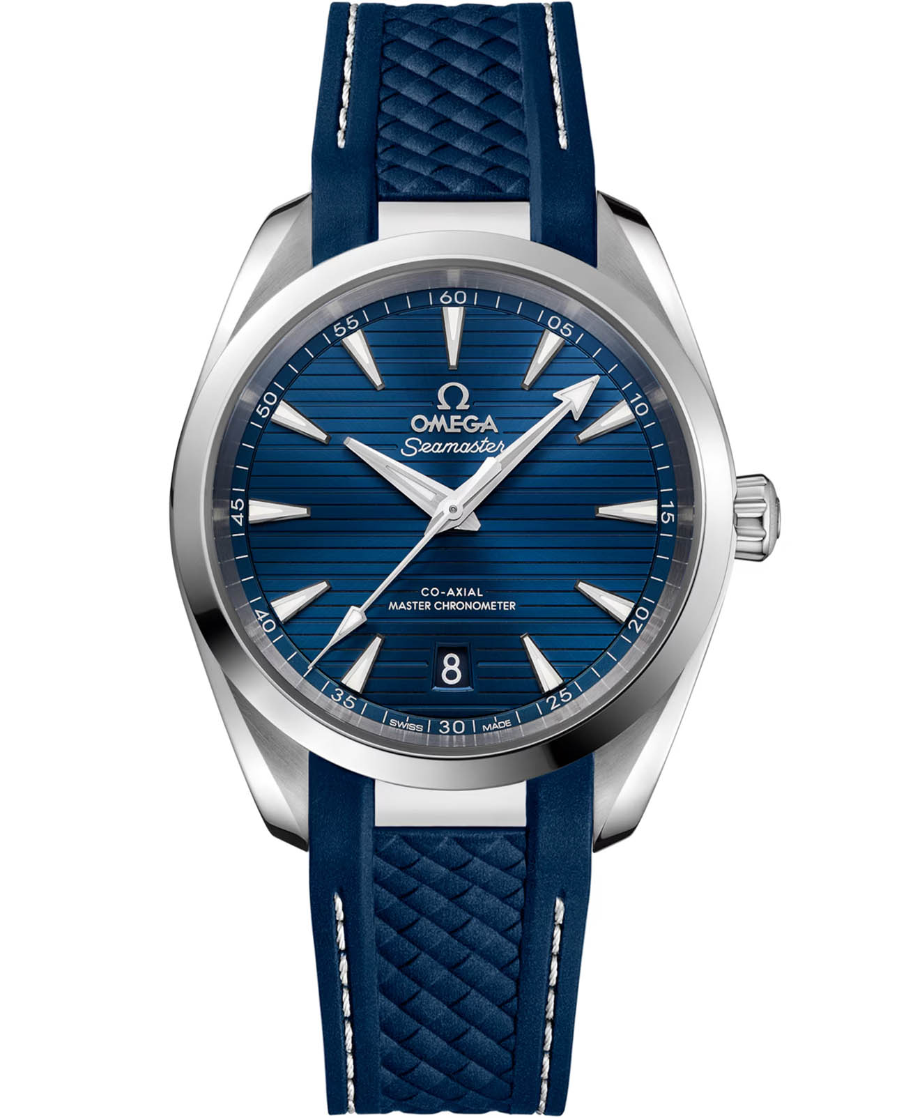 Omega Seamaster Aqua Terra выполнены в симметричном корпусе из нержавеющей стали с завинчивающейся задней крышкой, украшенной волновым узором. Циферблат дополнен окошком даты на 6 часах и оформлен горизонтальным рисунком, вдохновлённым текстурой тикового дерева палуб яхт. Стрелки и метки оснащены люминесцентным покрытиемЛюминесцентное покрытиеПозволяет считывать показания времени в темноте. Производители наносят на стрелки, часовые индексы, безель или поверхность циферблата светонакопительный состав, дающий холодное свечение. Super-LumiNova для лучшей читаемости в темноте. Калибр Omega 8800 сертифицирован как Master Chronometer — гарантия высочайшей точности и устойчивости к магнитным полям. Запас хода составляет 55 часов. Защиту циферблата обеспечивает сапфировое стеклоСапфировое стеклоПрочный и надёжный материал из кристалла сапфира синтетического происхождения, характеризующийся особой твёрдостью и устойчивостью к царапинам и повреждениям. с антибликовым покрытиемАнтибликовое покрытиеСлой оксида металла в 0,13-0,3 микрон, благодаря которому стекло часов не бликует и не отражает свет. Антибликовое покрытие уменьшает отражение света в 10 раз, обеспечивая отличную читаемость показателей циферблата.. Водозащита позволяет использовать часы в воде без риска повреждения. Часы установлены на каучуковый ремешок с вставкой и дополнительным стальным звеном. Это сочетание премиального качества, технологичности и классического дизайна.