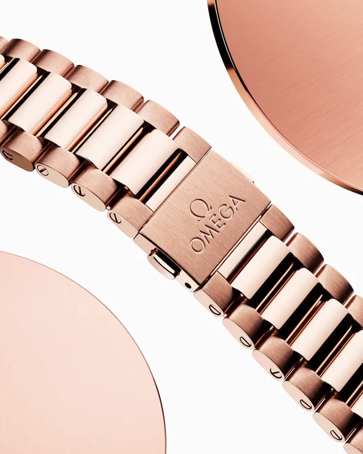 Omega Seamaster Aqua Terra выполнены в симметричном корпусе из полированного 18K Sedna™ золота с завинчивающейся задней крышкой, украшенной волновым узором. Безель инкрустирован бриллиантами, что добавляет модели роскошный акцент. Циферблат дополнен окошком даты на 6 часах, окаймлённым кольцом из 18K Sedna™ золота. Поверхность циферблата обработана методом CVD и имеет песочный оттенок с серыми вставками. Стрелки и метки выполнены из 18K Sedna™ золота и оснащены люминесцентным покрытиемЛюминесцентное покрытиеПозволяет считывать показания времени в темноте. Производители наносят на стрелки, часовые индексы, безель или поверхность циферблата светонакопительный состав, дающий холодное свечение. Super-LumiNova для лучшей читаемости в темноте. Индексы выполнены в форме корпусов парусников — деталь, подчёркивающая морское наследие коллекции. Калибр Omega 8801 сертифицирован как Master Chronometer — гарантия высочайшей точности и устойчивости к магнитным полям. Запас хода составляет 55 часов. Защиту циферблата обеспечивает сапфировое стеклоСапфировое стеклоПрочный и надёжный материал из кристалла сапфира синтетического происхождения, характеризующийся особой твёрдостью и устойчивостью к царапинам и повреждениям. с антибликовым покрытиемАнтибликовое покрытиеСлой оксида металла в 0,13-0,3 микрон, благодаря которому стекло часов не бликует и не отражает свет. Антибликовое покрытие уменьшает отражение света в 10 раз, обеспечивая отличную читаемость показателей циферблата. с обеих сторон. Водозащита позволяет использовать часы в воде без риска повреждения. Часы установлены на браслет из 18K Sedna™ золота с застёжкой-бабочкой с кнопкамиЗастёжка "бабочка"Такой вид застёжки дополняется предохранителями, помогающими избежать случайного раскрытия браслета. Обладают изящным исполнением. и закруглёнными звеньями. Это сочетание премиального качества, технологичности и классического дизайна.