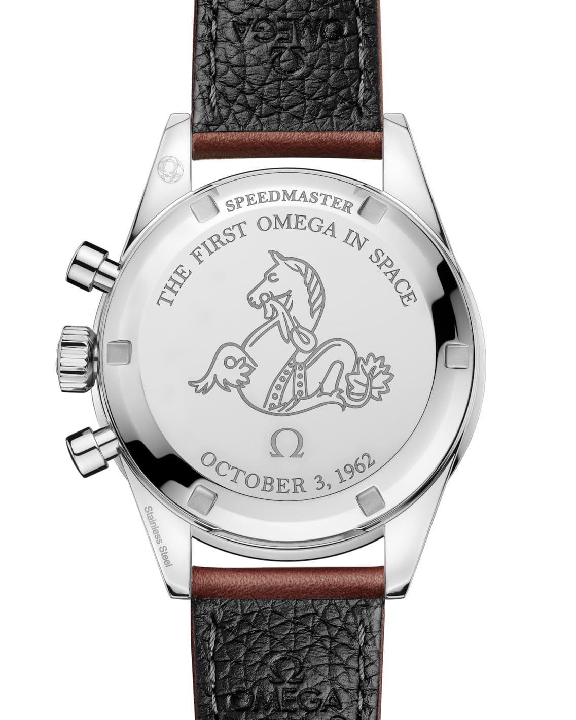 3 октября 1962 года Speedmaster CK 2998 навсегда вписали свое имя в историю, став первыми часами OMEGA, покорившими космос. Именно эта модель из личной коллекции астронавта Уолтера Ширры сопровождала его во время знаменитой миссии «Сигма-7» программы «Меркурий». Новая версия бережно воспроизводит культовый дизайн Speedmaster 2-го поколения, отдавая дань уважения легендарному прототипу. 39,7-миллиметровый корпус из полированной и сатинированной нержавеющей стали дополнен кожаным ремешком коричневого цвета с застежкой из нержавеющей стали. БезельБезельВнешний ободок, закрепляющий стекло. В спортивных часах так называется поворотное кольцо с делениями на циферблате, выполняет роль таймера – замеряет отрезки времени на шкале. Неподвижный безель – элемент декора. Однонаправленно вращающийся безель на дайверских часах позволяет фиксировать моменты погружения и выныривания на поверхность. из черного алюминия украшен классической тахиметрической шкалой с характерной точкой у отметки «90». Новаторское хезалитоподобное сапфировое стеклоСапфировое стеклоПрочный и надёжный материал из кристалла сапфира синтетического происхождения, характеризующийся особой твёрдостью и устойчивостью к царапинам и повреждениям. открывает вид на циферблат с CVD-покрытием серо-синего оттенка, вдохновленного историческими моделями CK 2998 1960-х. Индексы и стрелки Alpha покрыты винтажным составом Super-LumiNova, а центральная секундная стрелка Baton выполнена в белом лаковом исполнении. Компоновка счетчиков сохраняет историческую точность: 30-минутный на «3 часа», 12-часовой на «6 часов», малые секунды на «9 часов». Винтажный логотип OMEGA украшает циферблат и заводную головку, а на задней крышке красуется медальон с морским коньком и памятные гравировки «THE FIRST OMEGA IN SPACE» и «OCTOBER 3, 1962». В сердце часов бьется калибр Co-Axial Master Chronometer 3861 — современная реинкарнация легендарного космического механизма 321. Каждый экземпляр поставляется в эксклюзивном футляре с брошюрой LEGENDARY MOONWATCH, подчеркивая особый статус этой модели.