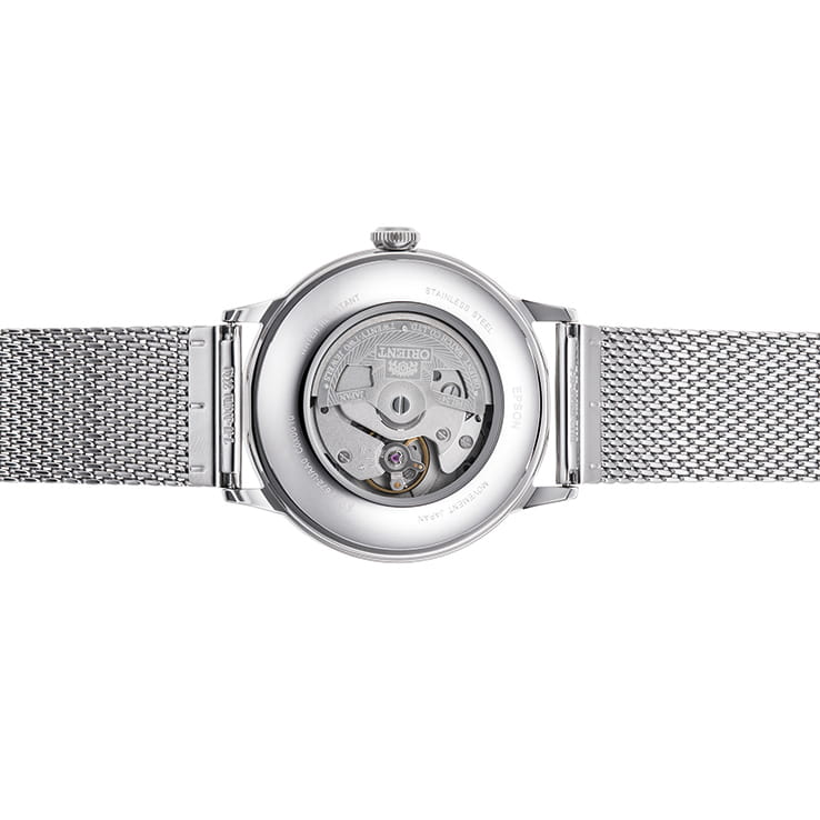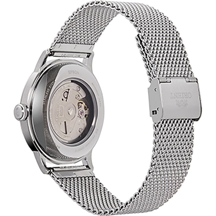 Мужские механические японские часы Orient Classic RA-AC0019L, механический механизм (автоматический калибр) с высокой точностью. Класс водозащиты: 30 метров, позволит защитить корпус от случайных брызг или капель дождя. Корпус часов изготовлен из стали. Возможность ручного завода. Функция stop-second. Циферблат с метками в виде штрихов и двух римских цифр. Окошко даты находится в положении 3 часа. Прозрачная задняя крышка. Браслет миланского плетения с раскладной застёжкойРаскладная застёжкаТакой тип застёжки используется только на браслетах из металла. Она никогда не раскрывается полностью, происходит разделение на 2 и более частей. Раскладывающая застёжка снизит вероятность потери часов к минимуму..