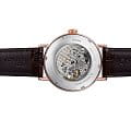 Через прозрачное окошко на циферблате открывается захватывающий вид на работу внутреннего механизма. Часы также поддерживают функцию ручного завода, что позволяет продлить срок службы аккумулятора. Задняя крышка выполнена из сапфирового стекла, предоставляющего возможность наслаждаться видом работающего механизма.