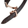 Эти часы комплектуются кожаным ремешком с раскладной застежкойРаскладная застёжкаТакой тип застёжки используется только на браслетах из металла. Она никогда не раскрывается полностью, происходит разделение на 2 и более частей. Раскладывающая застёжка снизит вероятность потери часов к минимуму., которая обеспечивает комфортное и безопасное ношение.