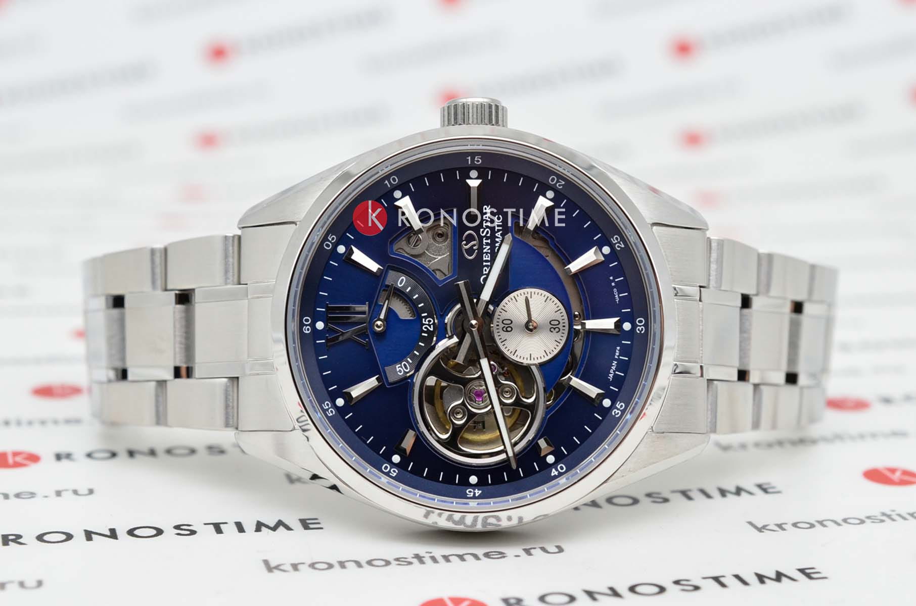 Мужские механические японские часы-скелетоны Orient Star RE-AV0003L, механический механизм (автоматический калибр) с высокой точностью. Сапфировое стеклоСапфировое стеклоПрочный и надёжный материал из кристалла сапфира синтетического происхождения, характеризующийся особой твёрдостью и устойчивостью к царапинам и повреждениям. с антибликовым покрытием устойчивое к появлению царапин, обладающее высокой прозрачностью. Класс водозащиты: 100 метров, позволит плавать, нырять и заниматься другими водными видами спорта. Корпус часов изготовлен из стали. Стальной браслет на раскладной застёжкеРаскладная застёжкаТакой тип застёжки используется только на браслетах из металла. Она никогда не раскрывается полностью, происходит разделение на 2 и более частей. Раскладывающая застёжка снизит вероятность потери часов к минимуму.. Центральные часовая и минутная стрелки с люминесцентным покрытиемЛюминесцентное покрытиеПозволяет считывать показания времени в темноте. Производители наносят на стрелки, часовые индексы, безель или поверхность циферблата светонакопительный состав, дающий холодное свечение.. Секундная стрелка вынесена на малый циферблат в позиции 6 часов. Ретроградный индикатор запаса хода в положении 12 часов. Открытый баланс хода.