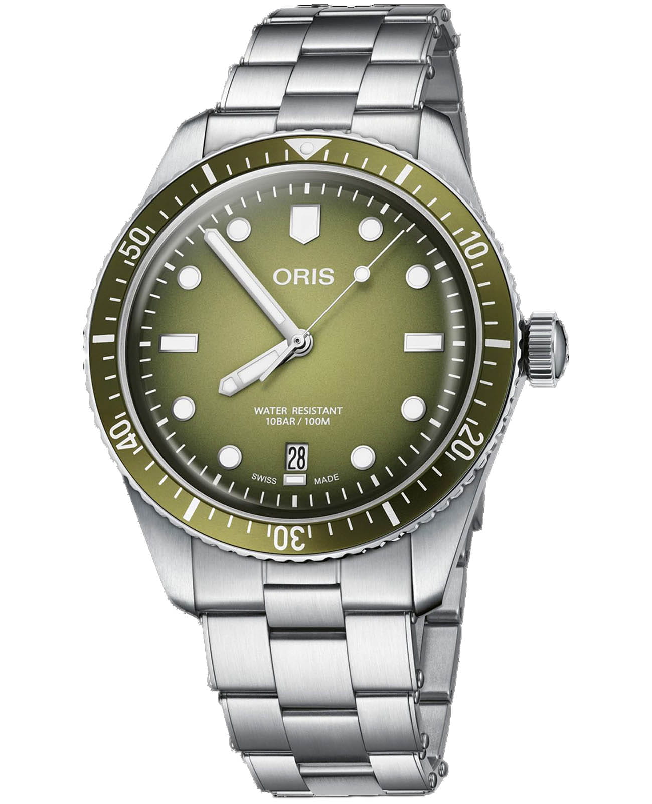 Швейцарские мужские часы ORIS Divers Sixty-Five — это современная интерпретация легендарной модели 1960-х годов, которая сочетает в себе классический дизайн ретро-дайверских часов и передовые технологии. Корпус диаметром 40 мм выполнен из высококачественной нержавеющей стали, что обеспечивает прочность и долговечность. Циферблат с традиционными стрелками и метками в виде штрихов защищен устойчивым к царапинам сапфировым стеклом с антибликовым покрытиемСапфировое стеклоПрочный и надёжный материал из кристалла сапфира синтетического происхождения, характеризующийся особой твёрдостью и устойчивостью к царапинам и повреждениям., обеспечивающим отличную читаемость показаний в любых условиях. Механизм Oris 733 — это автоматический механизм с автоподзаводом, который гарантирует точность хода и надежность работы. Функционал включает центральные часовые, минутные и секундные стрелки, окошко даты с быстрым переводом, а также функцию stop-second для точной настройки времени. Запас хода механизма составляет 41 час. Стрелки и метки имеют люминесцентное покрытиеЛюминесцентное покрытиеПозволяет считывать показания времени в темноте. Производители наносят на стрелки, часовые индексы, безель или поверхность циферблата светонакопительный состав, дающий холодное свечение., которое позволяет легко определять время даже в темноте. Поворотный безель из нержавеющей стали с PVD-покрытиемPVDУльтратонкое покрытие наносится в технике вакуумного напыления, сочетает в себе нитрид титана особой прочности со слоем золота или оксида хрома. Несёт в себе декоративную или защитную функцию. помогает точно отслеживать промежутки времени. Водозащита до 100 метров (WR100) делает эти часы идеальными для плавания и других водных видов спорта. Браслет из нержавеющей стали оснащен надежной раскладывающейся застежкойРаскладная застёжкаТакой тип застёжки используется только на браслетах из металла. Она никогда не раскрывается полностью, происходит разделение на 2 и более частей. Раскладывающая застёжка снизит вероятность потери часов к минимуму., обеспечивающей комфортную фиксацию на запястье.