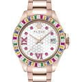 Женские кварцевые часы Philipp Plein Lady Empire PW2FA0425 — это стильное сочетание элегантности и современного дизайна. Изящный корпус выполнен из нержавеющей стали с PVD-покрытиемPVDУльтратонкое покрытие наносится в технике вакуумного напыления, сочетает в себе нитрид титана особой прочности со слоем золота или оксида хрома. Несёт в себе декоративную или защитную функцию. , диаметром 39 мм, что придаст образу женственности и романтизма. Изысканный циферблат с метками в виде точек и римских цифр придает модели особый блеск. Циферблат защищен минеральным стекломМинеральное стеклоМинеральное стекло представляет собой искусственно выращенный минерал кварца. Такое стекло отличается особой устойчивостью к повреждениям и царапинам. Уступает по некоторым качествам сапфировому стеклу., обеспечивающий устойчивость к царапинам и украшен кристаллами. Стрелки с люминесцентным покрытиемЛюминесцентное покрытиеПозволяет считывать показания времени в темноте. Производители наносят на стрелки, часовые индексы, безель или поверхность циферблата светонакопительный состав, дающий холодное свечение.. Окошко даты находится в положении 3 часа. БезельБезельВнешний ободок, закрепляющий стекло. В спортивных часах так называется поворотное кольцо с делениями на циферблате, выполняет роль таймера – замеряет отрезки времени на шкале. Неподвижный безель – элемент декора. Однонаправленно вращающийся безель на дайверских часах позволяет фиксировать моменты погружения и выныривания на поверхность. украшен цирконами. Часы оснащены надежным кварцевым механизмом. Стальной браслет с PVD-покрытиемPVDУльтратонкое покрытие наносится в технике вакуумного напыления, сочетает в себе нитрид титана особой прочности со слоем золота или оксида хрома. Несёт в себе декоративную или защитную функцию. на застёжке-бабочке с кнопкамиЗастёжка "бабочка"Такой вид застёжки дополняется предохранителями, помогающими избежать случайного раскрытия браслета. Обладают изящным исполнением. , гарантирует комфортное и безопасное ношение. Класс водозащиты: 50 метров позволит защитить корпус от случайных брызг или капель дождя. Phlipp Plein — отличный выбор для тех, кто ценит яркость и качество.