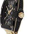 Philipp Plein The $keleton 2.0 PWJFA0625 - это дерзкие и бескомпромиссные часы, воплощающие бунтарский дух бренда. Их отличает узнаваемый мотив черепа, ставший визитной карточкой Philipp Plein, искусно интегрированный в дизайн циферблата. Скелетонизированные мужские механические часы с автоподзаводом. Бочкообразный стальной корпус диаметром 44 мм. Стальной браслет на застёжке «бабочка» с кнопкамиЗастёжка "бабочка"Такой вид застёжки дополняется предохранителями, помогающими избежать случайного раскрытия браслета. Обладают изящным исполнением. обеспечивает надёжную фиксацию и комфортное ношение. БезельБезельВнешний ободок, закрепляющий стекло. В спортивных часах так называется поворотное кольцо с делениями на циферблате, выполняет роль таймера – замеряет отрезки времени на шкале. Неподвижный безель – элемент декора. Однонаправленно вращающийся безель на дайверских часах позволяет фиксировать моменты погружения и выныривания на поверхность. с PVD-покрытиемPVDУльтратонкое покрытие наносится в технике вакуумного напыления, сочетает в себе нитрид титана особой прочности со слоем золота или оксида хрома. Несёт в себе декоративную или защитную функцию.. Метки в виде штрихов. Минеральное стеклоМинеральное стеклоМинеральное стекло представляет собой искусственно выращенный минерал кварца. Такое стекло отличается особой устойчивостью к повреждениям и царапинам. Уступает по некоторым качествам сапфировому стеклу. защищает циферблат от царапин. Люминесцентное покрытиеЛюминесцентное покрытиеПозволяет считывать показания времени в темноте. Производители наносят на стрелки, часовые индексы, безель или поверхность циферблата светонакопительный состав, дающий холодное свечение. стрелок и меток позволит следить за временем даже в полной темноте. Граненая заводная головка. Влагозащита: 50 метров, позволит защитить корпус от случайных брызг или капель дождя. Идеальный аксессуар для тех, кто ценит индивидуальность и не боится выделяться из толпы.