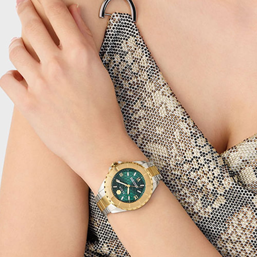 ​​Часы Philipp Plein  PWPOA0724 из коллекции Heaven сочетают элегантность и функциональность.​​ ​​Корпус диаметром 38 мм выполнен из нержавеющей стали, придающим изделию роскошный вид.​​ ​​Зеленый циферблат украшен фирменным логотипом бренда. ​​Часы оснащены кварцевым механизмом, обеспечивающим точность хода.​​ ​​Минеральное стеклоМинеральное стеклоМинеральное стекло представляет собой искусственно выращенный минерал кварца. Такое стекло отличается особой устойчивостью к повреждениям и царапинам. Уступает по некоторым качествам сапфировому стеклу. защищает циферблат от повреждений, а люминесцентное покрытиеЛюминесцентное покрытиеПозволяет считывать показания времени в темноте. Производители наносят на стрелки, часовые индексы, безель или поверхность циферблата светонакопительный состав, дающий холодное свечение. на стрелках обеспечивают удобное считывание времени в условиях недостаточной освещённости.​​ ​​Водозащита 50WR позволяет использовать часы в повседневной жизни, включая случайные контакты с водой.​​ ​​Стальной браслет на застёжке-бабочке с кнопкамиЗастёжка "бабочка"Такой вид застёжки дополняется предохранителями, помогающими избежать случайного раскрытия браслета. Обладают изящным исполнением. с частичным IP-покрытиемIP-покрытиеМетод ионного напыления. Демонстрирует повышенную устойчивость к истиранию, окислению и химическим веществам. Под воздействием высокого давления и температуры около 1500°C молекулы металла надёжно соединяются с частицами корпуса часов..​​ ​​Эти часы идеально подойдут для тех, кто ценит стиль и функциональность в одном аксессуаре.​​​​ БезельБезельВнешний ободок, закрепляющий стекло. В спортивных часах так называется поворотное кольцо с делениями на циферблате, выполняет роль таймера – замеряет отрезки времени на шкале. Неподвижный безель – элемент декора. Однонаправленно вращающийся безель на дайверских часах позволяет фиксировать моменты погружения и выныривания на поверхность. с IP-покрытиемIP-покрытиеМетод ионного напыления. Демонстрирует повышенную устойчивость к истиранию, окислению и химическим веществам. Под воздействием высокого давления и температуры около 1500°C молекулы металла надёжно соединяются с частицами корпуса часов..