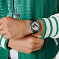Яркие мужские часы-хронографХронографФункция позволяет измерять отрезки времени с особой точностью: часы, минуты, секунды. Верным признаком хронографа является наличие на циферблате 3 дополнительных окошек-счётчиков. Philipp Plein Nobile Racing PWVAA0523 с секундомеромСекундомерСекундоме́р — прибор, способный измерять интервалы времени с точностью до долей секунды., кварцевый механизм с высокой точностью. Класс водозащиты: 50 метров, позволит защитить корпус от случайных брызг или капель дождя. Корпус часов изготовлен из стали с IP-покрытиемIP-покрытиеМетод ионного напыления. Демонстрирует повышенную устойчивость к истиранию, окислению и химическим веществам. Под воздействием высокого давления и температуры около 1500°C молекулы металла надёжно соединяются с частицами корпуса часов., циферблат украшен кристаллами, защищен прочным минеральным стекломМинеральное стеклоМинеральное стекло представляет собой искусственно выращенный минерал кварца. Такое стекло отличается особой устойчивостью к повреждениям и царапинам. Уступает по некоторым качествам сапфировому стеклу..