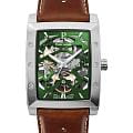 Мужские механические часы Pierre Lannier Hector 342A174 представляют собой уникальное сочетание винтажного стиля и современных технологий с корпусом "тонно" размером 36×42 мм из нержавеющей стали и прозрачным зеленым скелетонизированным циферблатом, раскрывающим работу автоматического механизма. Модель оснащена автоматическим механизмом с ручным подзаводом и 40-часовым запасом хода, демонстрирующим точное движение стрелок через прозрачный циферблат. Защиту обеспечивает устойчивое к царапинам минеральное стеклоМинеральное стеклоМинеральное стекло представляет собой искусственно выращенный минерал кварца. Такое стекло отличается особой устойчивостью к повреждениям и царапинам. Уступает по некоторым качествам сапфировому стеклу., а водонепроницаемость WR50 (5 бар) позволяет использовать часы при плавании в бассейне. Кожаный ремешок из коричневой кожи махагони с перфорацией шириной 26 мм и классической пряжкой добавляет ретро-характер и легко заменяется на другие ремешки коллекции. Особенности включают матово-полированную отделку корпуса, серебристые стрелки и индексы на зеленом циферблате, а также прозрачную заднюю крышку, демонстрирующую механизм.