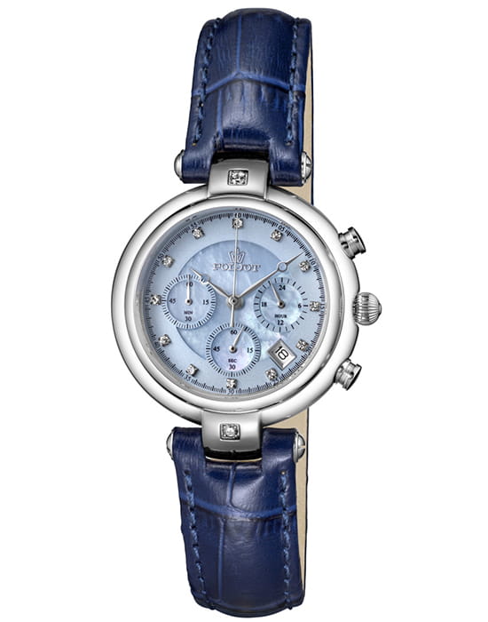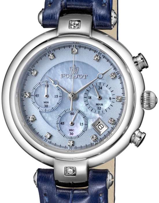 Poljot FS20.671343 — изящные женские часы с выразительным дизайном и функциональностью, воплощающие баланс классики и современности. Корпус из нержавеющей стали подчёркивает утончённость силуэта, а насыщенный циферблат с тремя счётчиками хронографаХронографФункция позволяет измерять отрезки времени с особой точностью: часы, минуты, секунды. Верным признаком хронографа является наличие на циферблате 3 дополнительных окошек-счётчиков. придаёт модели динамичный и технически точный характер. Окно даты добавляет практичности, сохраняя гармоничную симметрию циферблата. Изогнутые ушки корпуса и декоративные элементы придают часам изысканный женственный акцент. Прочное минеральное стеклоМинеральное стеклоМинеральное стекло представляет собой искусственно выращенный минерал кварца. Такое стекло отличается особой устойчивостью к повреждениям и царапинам. Уступает по некоторым качествам сапфировому стеклу. надёжно защищает поверхность, а ремешок из натуральной кожи обеспечивает комфорт и стильное прилегание к запястью. Poljot — это сочетание элегантности и функциональности, идеально подходящее для активной и уверенной в себе женщины.