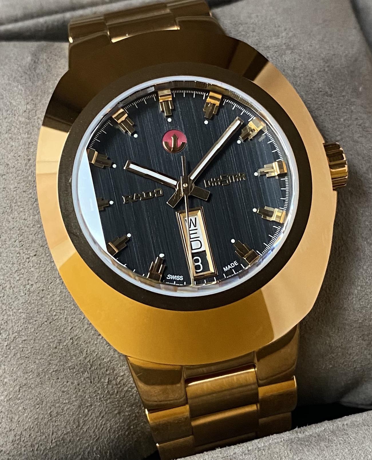 Мужские часы Rado New Original Automatic R12998153 c надёжным автоматическим механизмом. Корпус и браслет часов выполнены из нержавеющей стали с PVD-покрытиемPVDУльтратонкое покрытие наносится в технике вакуумного напыления, сочетает в себе нитрид титана особой прочности со слоем золота или оксида хрома. Несёт в себе декоративную или защитную функцию.. Стальной браслет на застёжке-бабочке с кнопкамиЗастёжка "бабочка"Такой вид застёжки дополняется предохранителями, помогающими избежать случайного раскрытия браслета. Обладают изящным исполнением. . Класс водозащиты: 30 метров, позволит защитить корпус от случайных брызг или капель дождя. Окошко даты находится в положении 4 часа. Стрелки и метки с люминесцентным покрытиемЛюминесцентное покрытиеПозволяет считывать показания времени в темноте. Производители наносят на стрелки, часовые индексы, безель или поверхность циферблата светонакопительный состав, дающий холодное свечение..