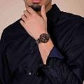 Мужские кварцевые часы Rado Centrix Chronograph — это гармоничное сочетание художественного выражения и изысканного дизайна. Корпус диаметром 41 мм и толщиной 11,4 мм выполнен из нержавеющей стали с PVD-покрытиемPVDУльтратонкое покрытие наносится в технике вакуумного напыления, сочетает в себе нитрид титана особой прочности со слоем золота или оксида хрома. Несёт в себе декоративную или защитную функцию.. Циферблат коричневого цвета с эффектом «солнечные лучи» оформлен накладными индексами цвета родия с люминесцентным покрытиемЛюминесцентное покрытиеПозволяет считывать показания времени в темноте. Производители наносят на стрелки, часовые индексы, безель или поверхность циферблата светонакопительный состав, дающий холодное свечение. Super-Luminova®, обеспечивающим отличную читаемость в темноте. Циферблат защищён выпуклым сапфировым стекломСапфировое стеклоПрочный и надёжный материал из кристалла сапфира синтетического происхождения, характеризующийся особой твёрдостью и устойчивостью к царапинам и повреждениям. с антибликовым покрытиемАнтибликовое покрытиеСлой оксида металла в 0,13-0,3 микрон, благодаря которому стекло часов не бликует и не отражает свет. Антибликовое покрытие уменьшает отражение света в 10 раз, обеспечивая отличную читаемость показателей циферблата. с обеих сторон. Механизм — швейцарский кварцевый с функцией хронографаХронографФункция позволяет измерять отрезки времени с особой точностью: часы, минуты, секунды. Верным признаком хронографа является наличие на циферблате 3 дополнительных окошек-счётчиков., оснащённый 22 камнями и технологиями Precidrive и Heavydrive, обеспечивающими точность хода ±10 секунд в год. Циферблат включает три субциферблата: 30-минутный счётчик, индикатор одной десятой секунды и малые секунды в положении 6 часов. Окошко даты расположено в положении 4 часов. Часы оснащены браслетом из полированной нержавеющей стали с с PVD-покрытиемPVDУльтратонкое покрытие наносится в технике вакуумного напыления, сочетает в себе нитрид титана особой прочности со слоем золота или оксида хрома. Несёт в себе декоративную или защитную функцию. и со вставками из высокотехнологичной керамикиВысокотехнологичная керамикаИнновационный запатентованный Rado материал с гладкой или матовой поверхностью. Керамика за счёт кристаллической структуры обладает повышенной устойчивостью от возникновения царапин. Материал способен принимать температуру тела человека, обеспечивая невероятный комфорт при ношении. коричневого цвета и застёжкой «бабочка» с кнопкамиЗастёжка "бабочка"Такой вид застёжки дополняется предохранителями, помогающими избежать случайного раскрытия браслета. Обладают изящным исполнением. из матовой стали. Водонепроницаемость 50 м позволяет использовать часы в повседневных условиях. Гарантия — 5 лет. Идеальный выбор для тех, кто ценит точность, стиль и швейцарское качество.