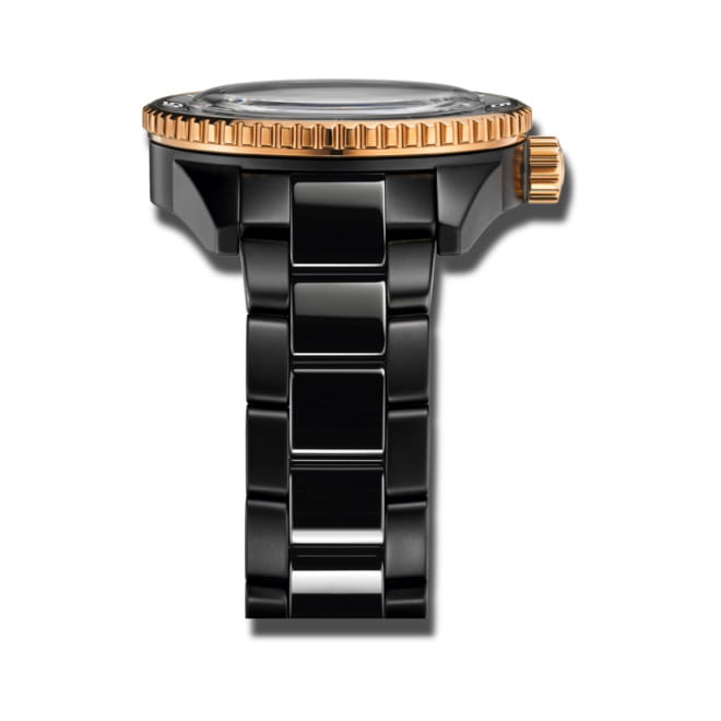 Премиальная модель обладает винтажным характером, чёрный циферблат обращает наше внимание на оригинальные стрелки в виде меча и стрелы. Часы обладают высокими показателями водонепроницаемости - сохранение герметичности до 20 бар, что стало возможным благодаря завинчивающейся задней крышке и заводной головке. Автоподзавод. Антибликовая обработка сапфирового стекла. Корпус из керамики, безельБезельВнешний ободок, закрепляющий стекло. В спортивных часах так называется поворотное кольцо с делениями на циферблате, выполняет роль таймера – замеряет отрезки времени на шкале. Неподвижный безель – элемент декора. Однонаправленно вращающийся безель на дайверских часах позволяет фиксировать моменты погружения и выныривания на поверхность. из высокотехнологичной керамикиВысокотехнологичная керамикаИнновационный запатентованный Rado материал с гладкой или матовой поверхностью. Керамика за счёт кристаллической структуры обладает повышенной устойчивостью от возникновения царапин. Материал способен принимать температуру тела человека, обеспечивая невероятный комфорт при ношении.. Прочный керамический браслет. Отображение числа. Диаметр корпуса: 43 мм.