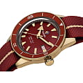 Часы выполнены в классическом дизайне, модель останется актуальной на долгие годы. Красный циферблат «солнечные лучи» дополнен контрастными цифрами. Премиальный аксессуар имеет роскошный корпус – он выполнен из бронзы и высокотехнологичной керамикиВысокотехнологичная керамикаИнновационный запатентованный Rado материал с гладкой или матовой поверхностью. Керамика за счёт кристаллической структуры обладает повышенной устойчивостью от возникновения царапин. Материал способен принимать температуру тела человека, обеспечивая невероятный комфорт при ношении.. Безупречную точность хода регулирует швейцарский автоматический калибр ETA C07.611 с запасом хода до 80 часов. Антибликовое покрытие сапфирового стекла улучшает читаемость показаний. Стрелки и метки дополнены люминесцентным покрытиемЛюминесцентное покрытиеПозволяет считывать показания времени в темноте. Производители наносят на стрелки, часовые индексы, безель или поверхность циферблата светонакопительный состав, дающий холодное свечение.. Закручивающаяся задняя крышка и завинчивающаяся заводная головка усиливают водостойкость модели до 30 бар. На метке 3 часов расположена апертура даты. Диаметр корпуса: 42 мм.