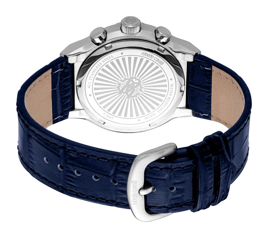 ROBERTO CAVALLI Ottimale RC5G045L0025 — стильные итальянские часы с функцией хронографаХронографФункция позволяет измерять отрезки времени с особой точностью: часы, минуты, секунды. Верным признаком хронографа является наличие на циферблате 3 дополнительных окошек-счётчиков., которые сочетают в себе элегантность и современный функционал. Круглый корпус диаметром 42 мм выполнен из нержавеющей стали, толщина корпуса составляет 12 мм, что придает модели выразительный внешний вид и надежную защиту от внешних воздействий. Часы оснащены кварцевым механизмом, также обладают функцией отображения даты и 24-часовой указатель времени, что делает их удобными для ежедневного использования. Минеральное стеклоМинеральное стеклоМинеральное стекло представляет собой искусственно выращенный минерал кварца. Такое стекло отличается особой устойчивостью к повреждениям и царапинам. Уступает по некоторым качествам сапфировому стеклу. защищает часы от царапин. Водозащита 100 метров, позволит плавать, нырять и заниматься другими водными видами спорта. Кожаный ремешок на стандартной застёжке обеспечивает комфортное ношение. Стрелки с люминесцентным покрытиемЛюминесцентное покрытиеПозволяет считывать показания времени в темноте. Производители наносят на стрелки, часовые индексы, безель или поверхность циферблата светонакопительный состав, дающий холодное свечение. обеспечивают отличную читаемость в любое время суток.