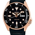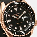 Часы Seiko 5 Sports SRPD76K1 сочетают в себе элегантный дизайн и надёжность, характерные для японского часового мастерства. Корпус диаметром 42,5 мм выполнен из нержавеющей стали с PVD-покрытиемPVDУльтратонкое покрытие наносится в технике вакуумного напыления, сочетает в себе нитрид титана особой прочности со слоем золота или оксида хрома. Несёт в себе декоративную или защитную функцию. розового золота, придающим часам утончённый вид. Чёрный циферблат защищён минеральным стекломМинеральное стеклоМинеральное стекло представляет собой искусственно выращенный минерал кварца. Такое стекло отличается особой устойчивостью к повреждениям и царапинам. Уступает по некоторым качествам сапфировому стеклу. с повышенной прочностью.