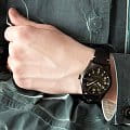Механические часы Seiko SRPG41 из коллекции 5 Sports Field — это идеальное сочетание японской точности, надёжности и современного дизайна. Модель оснащена калибром 4R36 с автоподзаводом и возможностью ручной подзаводки. Механизм имеет 24 драгоценных камня и обеспечивает запас хода до 41 часа. Также реализована функция стоп-секунды для точной установки времени и защита от магнитных полей до 4800 А/м. Часы поддерживают отображение времени в 12- и 24-часовом формате, что делает их удобными для использования в разных часовых поясах. Циферблат серого цвета оформлен арабскими цифрами, а также стрелками и метками с фирменным люминесцентным покрытиемЛюминесцентное покрытиеПозволяет считывать показания времени в темноте. Производители наносят на стрелки, часовые индексы, безель или поверхность циферблата светонакопительный состав, дающий холодное свечение. LumiBrite, обеспечивающим отличную читаемость даже в темноте. Окошко даты и дня недели размещено в положении 3 часов, что делает его легко читаемым. Защиту циферблата обеспечивает минеральное стеклоМинеральное стеклоМинеральное стекло представляет собой искусственно выращенный минерал кварца. Такое стекло отличается особой устойчивостью к повреждениям и царапинам. Уступает по некоторым качествам сапфировому стеклу. Hardlex выпуклой формы — прочное и устойчивое к мелким повреждениям. Корпус диаметром 39,4 мм изготовлен из стали с PVD-покрытиемPVDУльтратонкое покрытие наносится в технике вакуумного напыления, сочетает в себе нитрид титана особой прочности со слоем золота или оксида хрома. Несёт в себе декоративную или защитную функцию., придающим модели благородный внешний вид и повышенную стойкость к царапинам. Заводная головка имеет рифлёную форму для удобства использования, а задняя крышка — завинчивающаяся и прозрачная, что позволяет наблюдать за работой механизма. Часы водонепроницаемы до 100 метров (), что позволяет использовать их при плавании и других водных активностях. Ремешок из натуральной кожи дополнен классической застёжкой, обеспечивая комфорт и строгий стиль, подходящий как для повседневного, так и для неформального образа. Длина ремешка составляет 205 мм, ширина — 20 мм, что делает модель универсальной по посадке на запястье. Эти часы станут идеальным выбором для тех, кто ценит сочетание технологичности, прочности и стиля — надёжный аксессуар для уверенных в себе мужчин, сочетающий в себе традиции Seiko и современный подход к дизайну.