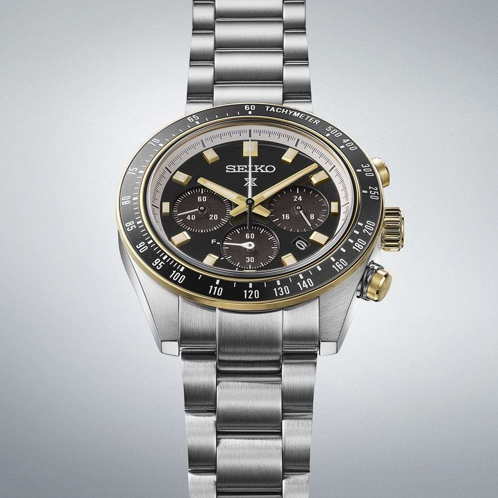 Модель Seiko SSC941P1 из коллекции Prospex Speedtimer — это спортивный солнечный хронограф, сочетающий ретро-дизайн и современные технологии. Корпус диаметром 41,4 мм выполнен из нержавеющей стали, оснащён завинчивающейся задней крышкой и головкой, что обеспечивает водозащиту до 100 метров. Алюминиевый фиксированный тахиметрический безельТахиметрРазмеченная шкала, располагается на ободке или безеле часов. Тахиметр позволяет рассчитать скорость на определённом участке пути, расстояние измеряется в километрах или милях. позволяет производить замеры скорости. Чёрный циферблат с солнечным финишем украшен тремя золотисто-оформленными счётчиками: 60-минутным хронографом, 24-часовым индикатором и малой секундной стрелкой. Стрелки и метки покрыты люминесцентным покрытиемЛюминесцентное покрытиеПозволяет считывать показания времени в темноте. Производители наносят на стрелки, часовые индексы, безель или поверхность циферблата светонакопительный состав, дающий холодное свечение. LumiBrite, обеспечивая отличную читаемость в темноте. Циферблат защищён выпуклым сапфировым стекломСапфировое стеклоПрочный и надёжный материал из кристалла сапфира синтетического происхождения, характеризующийся особой твёрдостью и устойчивостью к царапинам и повреждениям. с антибликовым покрытиемАнтибликовое покрытиеСлой оксида металла в 0,13-0,3 микрон, благодаря которому стекло часов не бликует и не отражает свет. Антибликовое покрытие уменьшает отражение света в 10 раз, обеспечивая отличную читаемость показателей циферблата., устойчивым к царапинам и бликам. Внутри установлен солнечный кварцевый механизм Seiko V192 с функциями хронографаХронографФункция позволяет измерять отрезки времени с особой точностью: часы, минуты, секунды. Верным признаком хронографа является наличие на циферблате 3 дополнительных окошек-счётчиков., 24-часовым индикатором, датой и индикатором запаса хода. Полного заряда достаточно для работы до 6 месяцев. Браслет выполнен из нержавеющей стали и снабжён надёжной раскладной застёжкойРаскладная застёжкаТакой тип застёжки используется только на браслетах из металла. Она никогда не раскрывается полностью, происходит разделение на 2 и более частей. Раскладывающая застёжка снизит вероятность потери часов к минимуму. с кнопками. Seiko SSC941P1 — универсальный и выразительный хронограф, в котором точность и стиль сочетаются с практичностью и удобством солнечного питания.