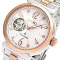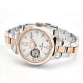 Женские механические часы с автоподзаводом Seiko — это элегантный аксессуар. Корпус диаметром 34,6 мм и толщиной 11 мм выполнен из нержавеющей стали. БезельБезельВнешний ободок, закрепляющий стекло. В спортивных часах так называется поворотное кольцо с делениями на циферблате, выполняет роль таймера – замеряет отрезки времени на шкале. Неподвижный безель – элемент декора. Однонаправленно вращающийся безель на дайверских часах позволяет фиксировать моменты погружения и выныривания на поверхность. с PVD-покрытиемPVDУльтратонкое покрытие наносится в технике вакуумного напыления, сочетает в себе нитрид титана особой прочности со слоем золота или оксида хрома. Несёт в себе декоративную или защитную функцию. цвета розового золота. Циферблат белого цвета оформлен индексами, стрелками и эффектом открытого баланса (скелетон). Циферблат украшен кристаллами. Стрелки и метки с люминесцентным покрытиемЛюминесцентное покрытиеПозволяет считывать показания времени в темноте. Производители наносят на стрелки, часовые индексы, безель или поверхность циферблата светонакопительный состав, дающий холодное свечение., обеспечивающим хорошую читаемость в темноте. Циферблат защищён сапфировым стекломСапфировое стеклоПрочный и надёжный материал из кристалла сапфира синтетического происхождения, характеризующийся особой твёрдостью и устойчивостью к царапинам и повреждениям., устойчивым к царапинам. Механизм — автоматический калибр 4R38 (24 камня, частота 21 600 полуколебаний в час) с функцией остановки секундной стрелки и запасом хода до 41 часа. Часы оснащены стальным браслетом с частичным PVD-покрытиемPVDУльтратонкое покрытие наносится в технике вакуумного напыления, сочетает в себе нитрид титана особой прочности со слоем золота или оксида хрома. Несёт в себе декоративную или защитную функцию. на раскладной застёжкеРаскладная застёжкаТакой тип застёжки используется только на браслетах из металла. Она никогда не раскрывается полностью, происходит разделение на 2 и более частей. Раскладывающая застёжка снизит вероятность потери часов к минимуму.. Водонепроницаемость 100 м позволяет использовать часы для плавания и повседневного ношения. Идеальный выбор для тех, кто ценит японское качество и безупречный стиль.