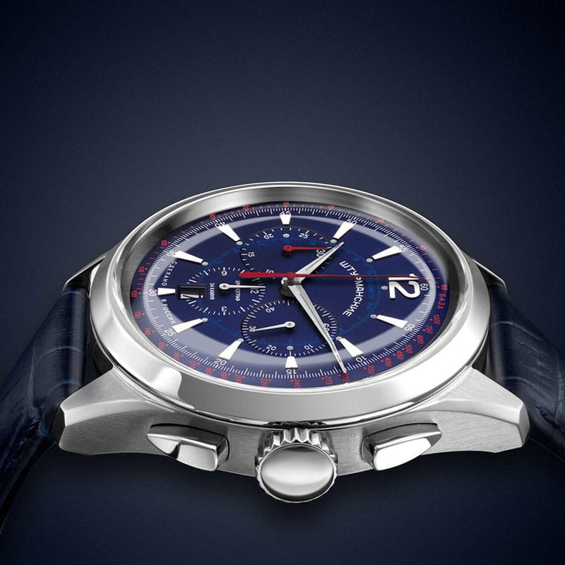 Лимитированные мужские российские механические часы-хронографХронографФункция позволяет измерять отрезки времени с особой точностью: часы, минуты, секунды. Верным признаком хронографа является наличие на циферблате 3 дополнительных окошек-счётчиков. с секундомеромСекундомерСекундоме́р — прибор, способный измерять интервалы времени с точностью до долей секунды. Штурманские Открытый Космос NE88-1855555, механический механизм (автоматический калибр) с высокой точностью. Сапфировое стеклоСапфировое стеклоПрочный и надёжный материал из кристалла сапфира синтетического происхождения, характеризующийся особой твёрдостью и устойчивостью к царапинам и повреждениям. устойчивое к появлению царапин, обладающее высокой прозрачностью. Класс водозащиты: 50 метров, позволит защитить корпус от случайных брызг или капель дождя. Корпус часов изготовлен из стали. Кожаный ремешок на стандартной застёжке. Стрелки и метки с люминесцентным покрытиемЛюминесцентное покрытиеПозволяет считывать показания времени в темноте. Производители наносят на стрелки, часовые индексы, безель или поверхность циферблата светонакопительный состав, дающий холодное свечение.. Стальной корпус надежно защищает от повреждений механический японский калибр Seiko NE88 на 34 камня с запасом хода 42 часа. Подзавод у часов автоматический.