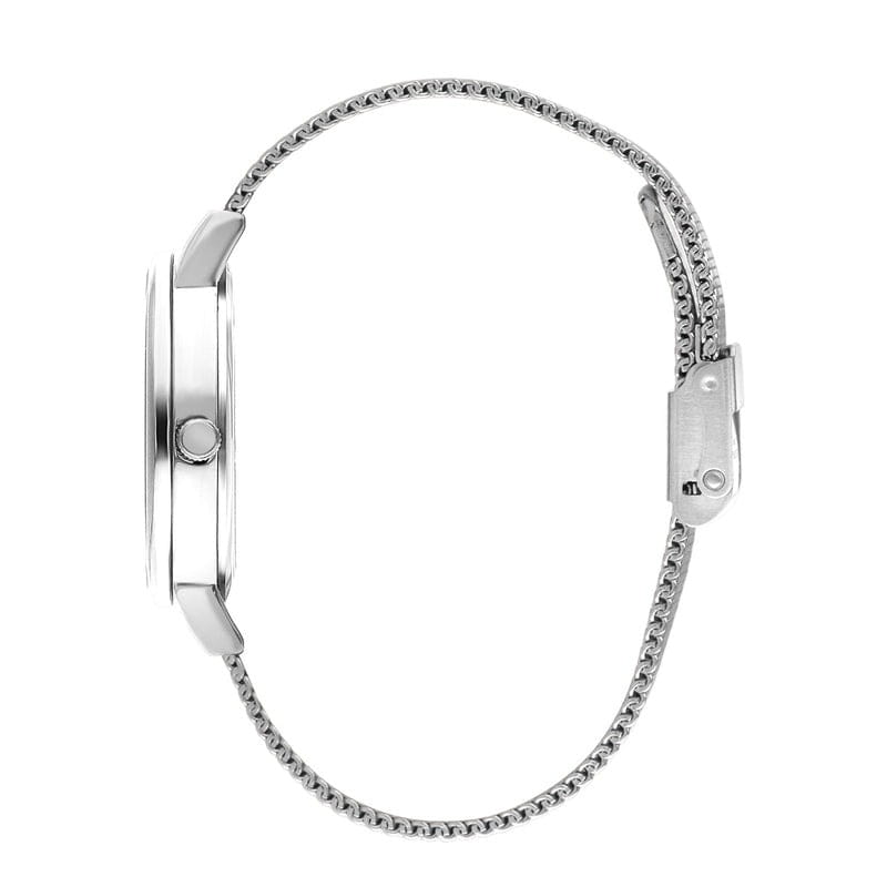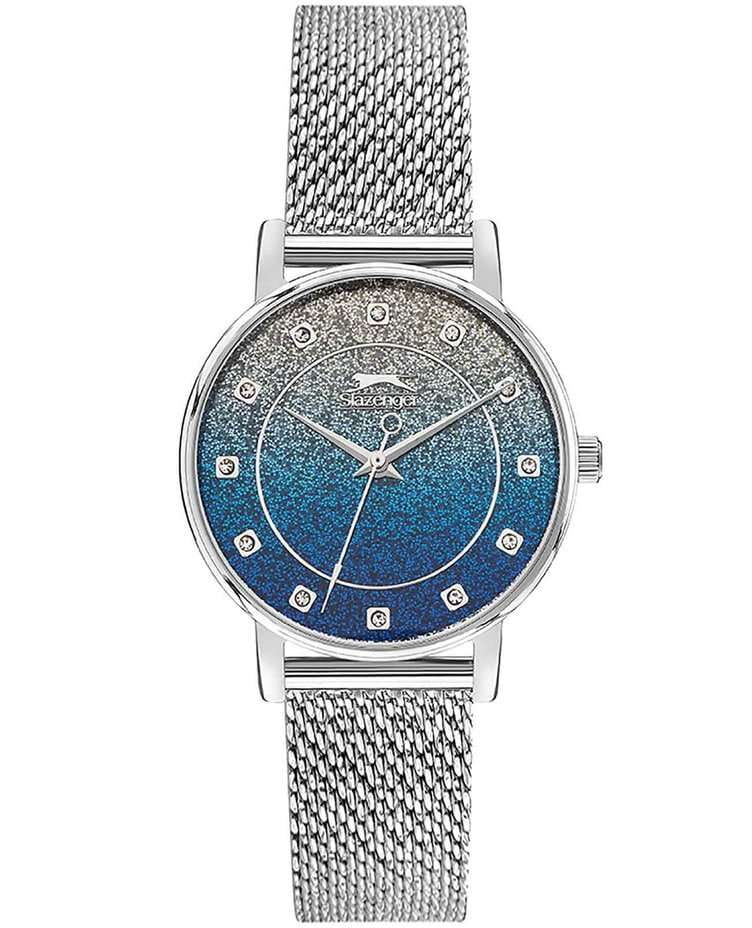 Часы Slazenger SL.09.2053.3.05 — это воплощение элегантности и современного стиля, которые придутся по вкусу каждой женщине. Градиентный блестящий циферблат, цвет готорого переходит из синего в серебряный, придает часам утонченный вид, гармонично сочетаясь с корпусом и безелемБезельВнешний ободок, закрепляющий стекло. В спортивных часах так называется поворотное кольцо с делениями на циферблате, выполняет роль таймера – замеряет отрезки времени на шкале. Неподвижный безель – элемент декора. Однонаправленно вращающийся безель на дайверских часах позволяет фиксировать моменты погружения и выныривания на поверхность. из суперметалла серебристого цвета. Эти часы оснащены надежным кварцевым механизмом, который обеспечивает точность и долговечность. Водозащита уровня 3 ATM защитит от случайных брызг, а минеральное стеклоМинеральное стеклоМинеральное стекло представляет собой искусственно выращенный минерал кварца. Такое стекло отличается особой устойчивостью к повреждениям и царапинам. Уступает по некоторым качествам сапфировому стеклу. сохранит циферблат от царапин. Изюминкой дизайна являются фианиты, добавляющие блеск и изысканность. Серебристый браслет с миланским плетением, оснащенный раскладным замкомРаскладной замокДанный вариант застежки используется только на часах с металлическим браслетом. Отличительная особенность такого крепления в том, что длина браслета становится универсальной и вы можете самостоятельно отрегулировать нужный вам размер – застежка просто двигается по браслету часов., обеспечивает комфорт и стильное прилегание к запястью. Диаметр корпуса составляет 34 мм, а толщина — 9 мм, что делает эти часы универсальным аксессуаром для любого наряда.