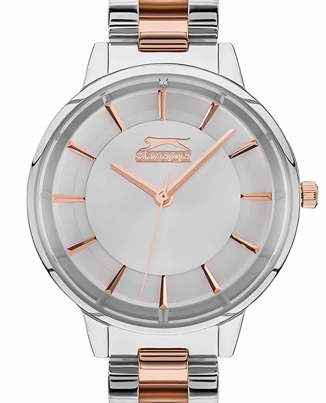 Часы Slazenger SL.09.2054.3.03 — это элегантное сочетание стиля и функциональности, созданное специально для женщин. Их изысканный серебристый циферблат и корпус из суперметалла придают часам современный и утонченный вид. Внутри скрыт надежный кварцевый механизм, который гарантирует точность и долговечность. Минеральное стеклоМинеральное стеклоМинеральное стекло представляет собой искусственно выращенный минерал кварца. Такое стекло отличается особой устойчивостью к повреждениям и царапинам. Уступает по некоторым качествам сапфировому стеклу. защищает часы от царапин.  Браслет из суперметалла с частичным IP-покрытиемIP-покрытиеМетод ионного напыления. Демонстрирует повышенную устойчивость к истиранию, окислению и химическим веществам. Под воздействием высокого давления и температуры около 1500°C молекулы металла надёжно соединяются с частицами корпуса часов. и раскладной застёжкойРаскладная застёжкаТакой тип застёжки используется только на браслетах из металла. Она никогда не раскрывается полностью, происходит разделение на 2 и более частей. Раскладывающая застёжка снизит вероятность потери часов к минимуму. подчеркивает женственность дизайна и обеспечивает комфорт в носке.  Диаметр корпуса составляет 35 мм, а толщина — 9 мм, что делает их идеальным аксессуаром для любой стильной женщины. Водозащита уровня 3 ATM позволяет не беспокоиться о случайных брызгах.