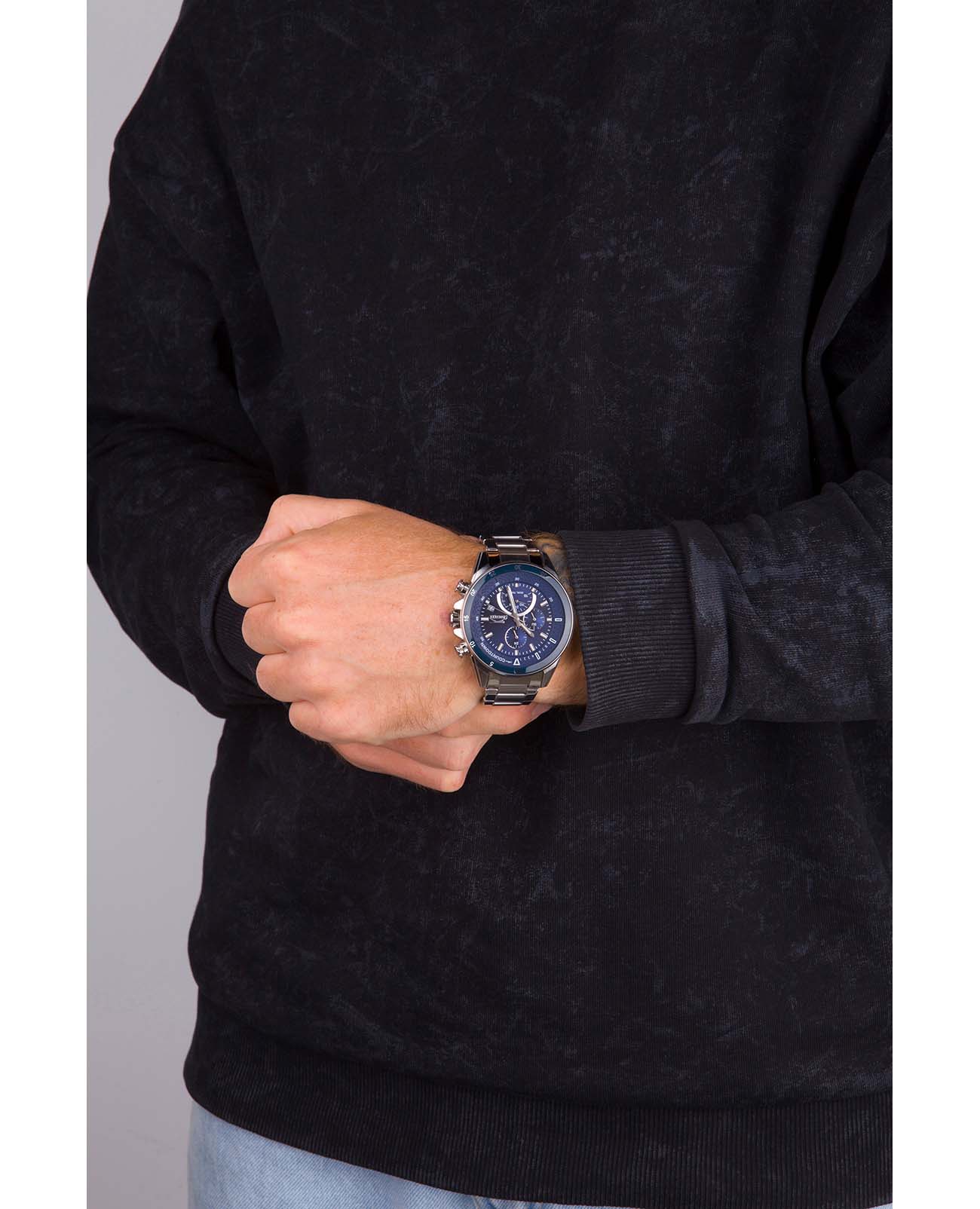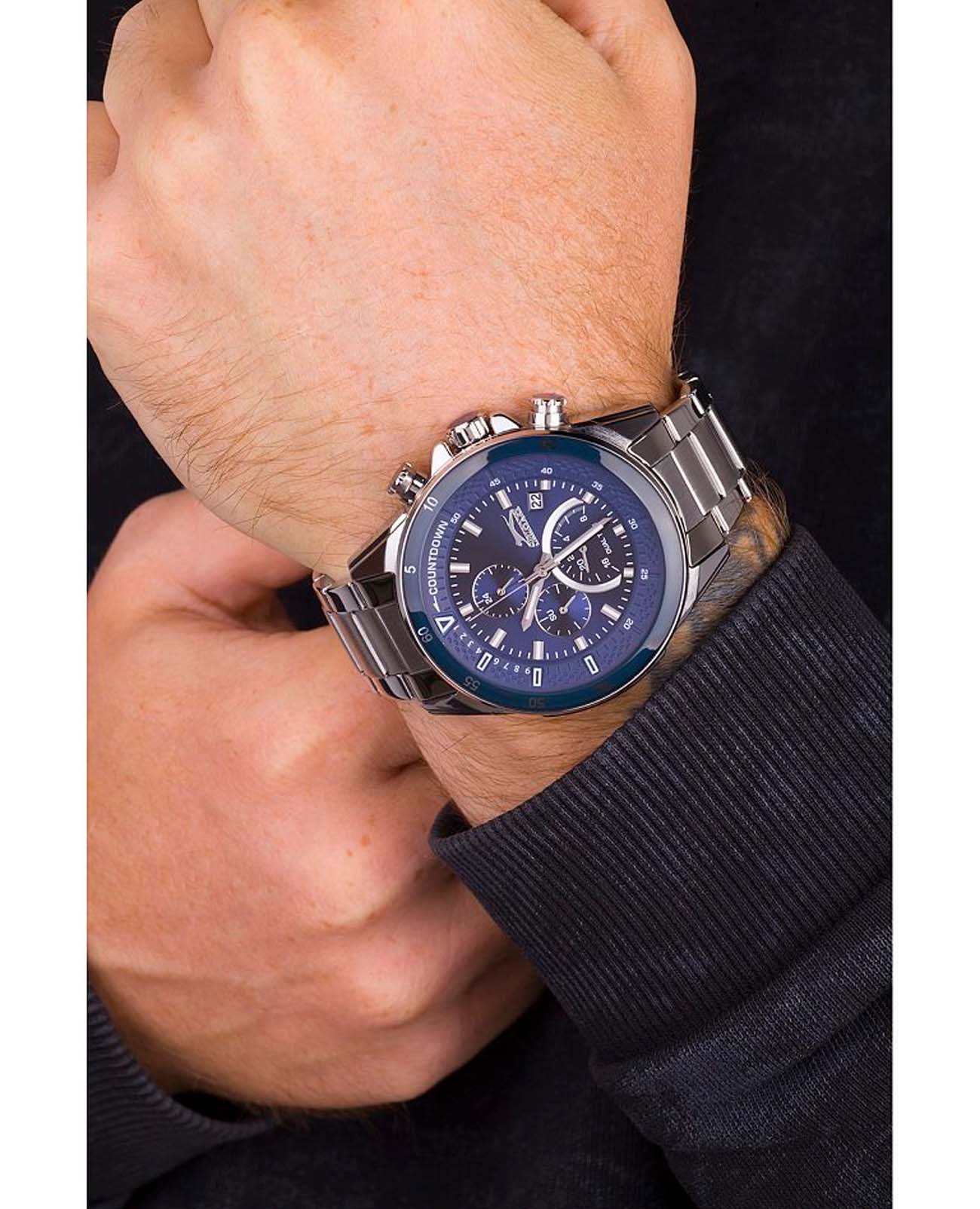 Мужские наручные часы Slazenger SL.09.2056.2.02 сочетают в себе классический дизайн и надежность современных технологий. Модель обладает круглым корпусом диаметром 48 мм, изготовленным из металлического сплава, что обеспечивает высокую устойчивость к внешним воздействиям. БезельБезельВнешний ободок, закрепляющий стекло. В спортивных часах так называется поворотное кольцо с делениями на циферблате, выполняет роль таймера – замеряет отрезки времени на шкале. Неподвижный безель – элемент декора. Однонаправленно вращающийся безель на дайверских часах позволяет фиксировать моменты погружения и выныривания на поверхность. с IP-покрытиемIP-покрытиеМетод ионного напыления. Демонстрирует повышенную устойчивость к истиранию, окислению и химическим веществам. Под воздействием высокого давления и температуры около 1500°C молекулы металла надёжно соединяются с частицами корпуса часов.. Браслет выполнен из стали с раскладной застежкой, гарантирующей комфортное ношение и безопасность. Циферблат декорирован стрелками с люминесцентным покрытиемЛюминесцентное покрытиеПозволяет считывать показания времени в темноте. Производители наносят на стрелки, часовые индексы, безель или поверхность циферблата светонакопительный состав, дающий холодное свечение., которые обеспечивают читаемость времени даже в условиях недостаточной освещенности. Для защиты используется минеральное стеклоМинеральное стеклоМинеральное стекло представляет собой искусственно выращенный минерал кварца. Такое стекло отличается особой устойчивостью к повреждениям и царапинам. Уступает по некоторым качествам сапфировому стеклу., обеспечивающее прочную защиту от царапин. Часы работают на кварцевом механизме, что гарантирует точное время без необходимости подзаводки. Модель также оснащена функцией отображения даты, дня недели, а также второго часового пояса, делая ее практичной для повседневного использования и путешествий.