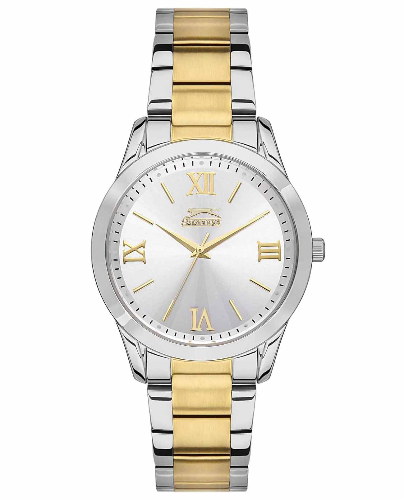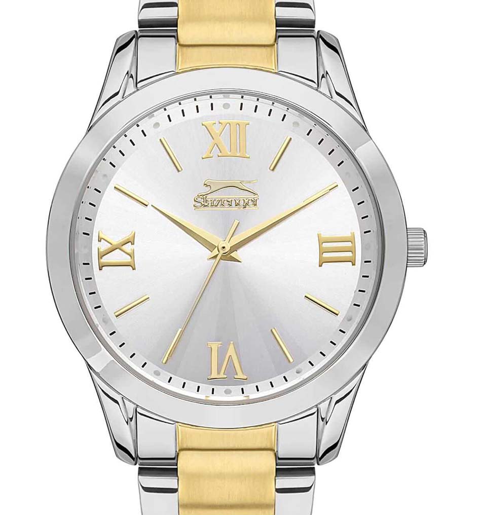 Slazenger SL.09.2132.3.02 — это элегантные женские наручные часы. Они имеют круглый циферблат с диаметром 36 мм, выполненный в серебристом цвете. Корпус часов, толщиной 10 мм, изготовлен из суперметалла, что обеспечивает долговечность и устойчивость к коррозии. Браслет также выполнен из суперметалла с частичным золотистым IP-покрытиемIP-покрытиеМетод ионного напыления. Демонстрирует повышенную устойчивость к истиранию, окислению и химическим веществам. Под воздействием высокого давления и температуры около 1500°C молекулы металла надёжно соединяются с частицами корпуса часов., придавая часам стильный и современный вид. Размер браслета (H1-H2): 16-18 мм. Часы оснащены кварцевым механизмом, который гарантирует точность хода. Циферблат защищен минеральным стекломМинеральное стеклоМинеральное стекло представляет собой искусственно выращенный минерал кварца. Такое стекло отличается особой устойчивостью к повреждениям и царапинам. Уступает по некоторым качествам сапфировому стеклу., устойчивым к царапинам. Модель водонепроницаема до 30 метров, что позволяет носить ее во время дождя или мытья рук. Браслет оснащен раскладной застёжкойРаскладная застёжкаТакой тип застёжки используется только на браслетах из металла. Она никогда не раскрывается полностью, происходит разделение на 2 и более частей. Раскладывающая застёжка снизит вероятность потери часов к минимуму. для удобства использования. Эти часы сочетают в себе функциональность и стильный дизайн, делая их отличным аксессуаром для повседневного использования и особых случаев.