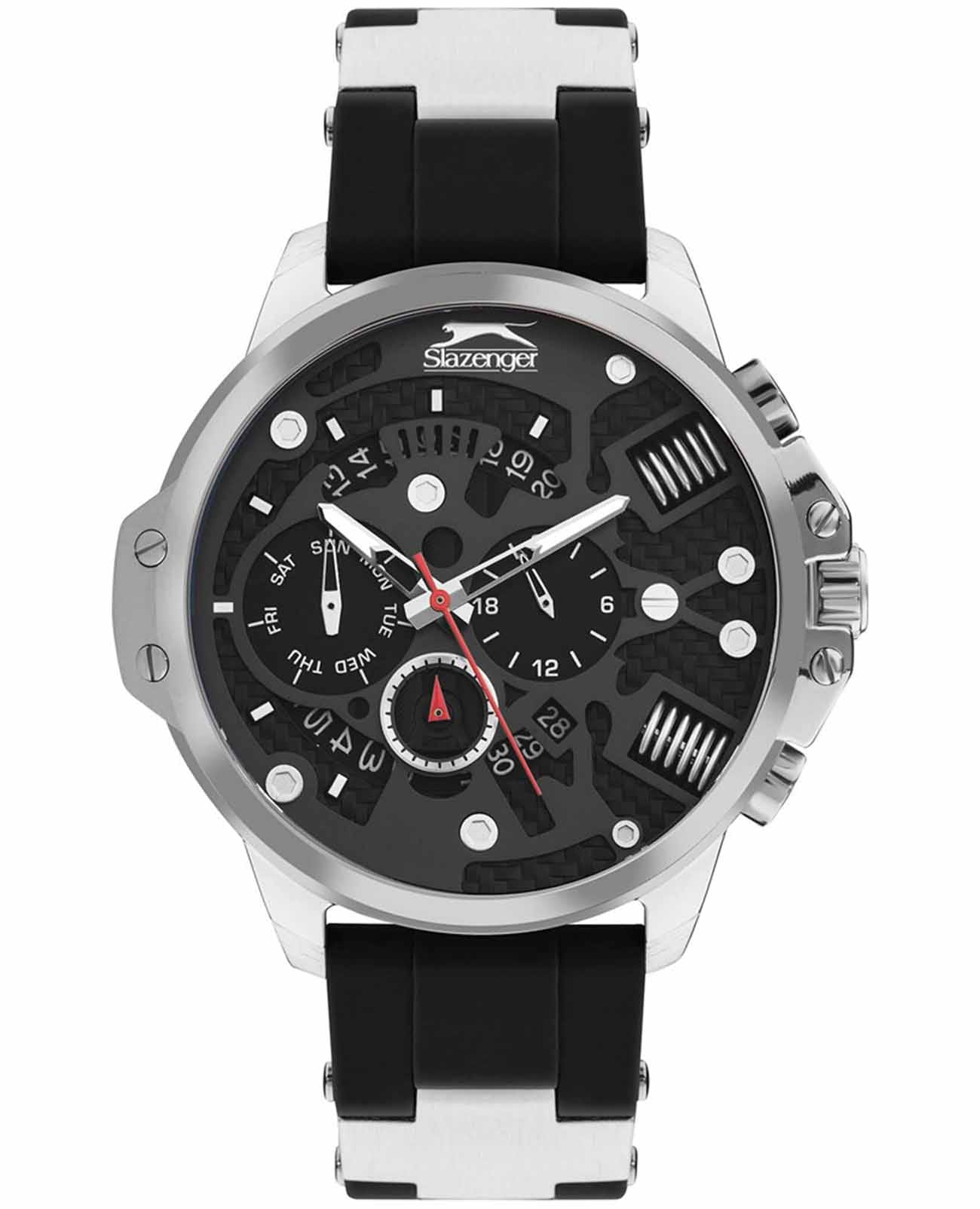 Часы Slazenger SL.09.2212.2.01 представляют собой стильный и функциональный аксессуар, созданный для современных мужчин, ценящих качество и надежность. Они оснащены кварцевым механизмом, который обеспечивает точность хода и минимальную необходимость в обслуживании. Люминесцентное покрытиеЛюминесцентное покрытиеПозволяет считывать показания времени в темноте. Производители наносят на стрелки, часовые индексы, безель или поверхность циферблата светонакопительный состав, дающий холодное свечение. на стрелках и метках обеспечивает отличную видимость в темноте. Благодаря водозащите уровня WR 50 (5 ATM), эти часы отлично справляются с воздействием влаги, что делает их подходящими для повседневного ношения и активного образа жизни. Минеральное стеклоМинеральное стеклоМинеральное стекло представляет собой искусственно выращенный минерал кварца. Такое стекло отличается особой устойчивостью к повреждениям и царапинам. Уступает по некоторым качествам сапфировому стеклу. защищает циферблат от царапин и повреждений, гарантируя долгий срок службы. Корпус часов диаметром 47 мм и толщиной 13 мм выполнен из прочного суперметалла, что придаёт им стильный и современный вид. Силиконовый черный браслет, дополненный элементами из суперметалла, обеспечивает комфорт при носке и надёжно фиксирует часы на запястье, а его размеры (22-20 мм) подходят для большинства мужчин. Часы оснащены рядом полезных функций, таких как индикация даты, дня недели и 24-часовой указатель времени, что делает их не только стильным, но и практичным аксессуаром. Вес модели составляет 110 г, что делает их лёгкими и удобными для ежедневного ношения.